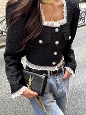 July おしゃれ 裾フリルツイードジャケット 韓ドラ お揃い 2025 春夏 個性的 オシャレ 韓国系ファッション 流行り 春服 july25082601 | パリジェンヌ、韓国系ファッション July