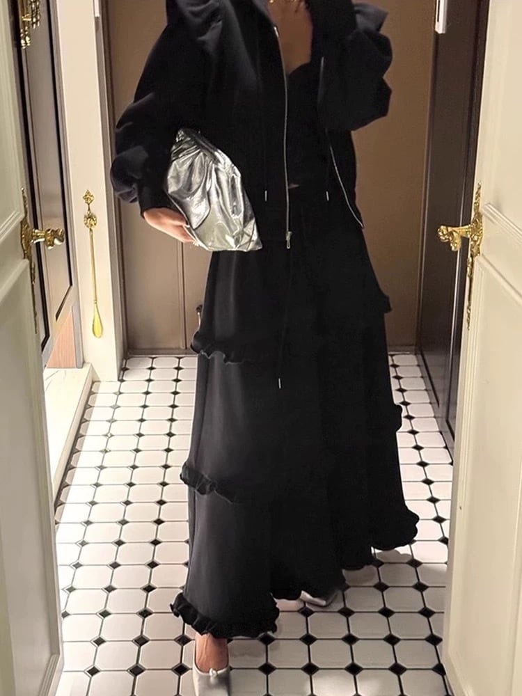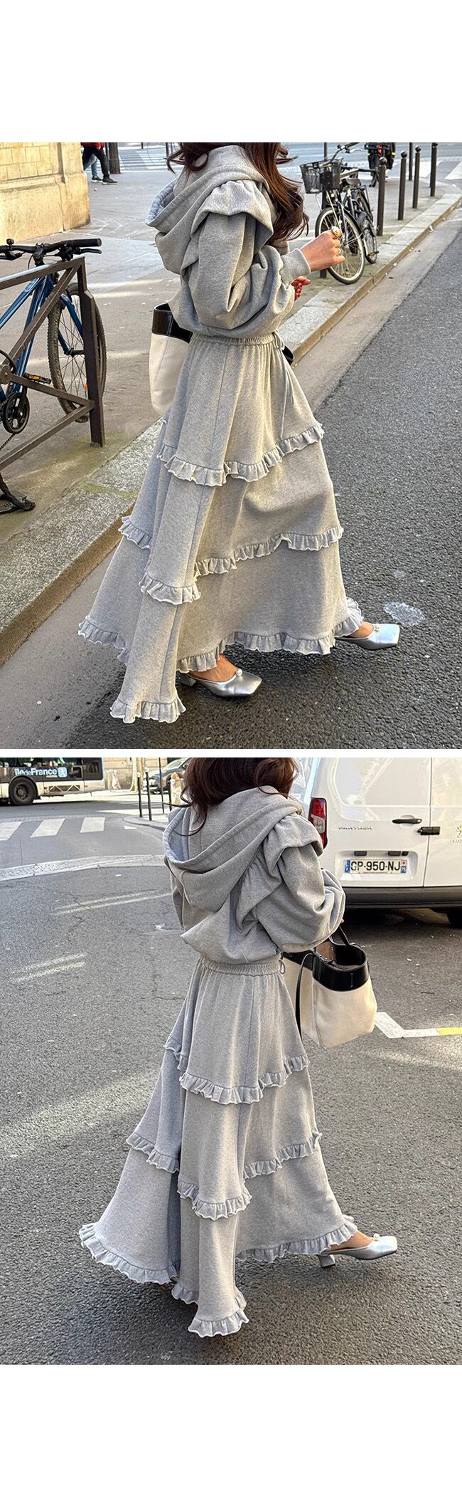 July おしゃれ スウェットパーカー+フリルロングスカート セットアップ 韓ドラ お揃い 2025 秋冬 個性的 オシャレ 韓国系ファッション 流行り 春服 july25101001 | パリジェンヌ、韓国系ファッション July
