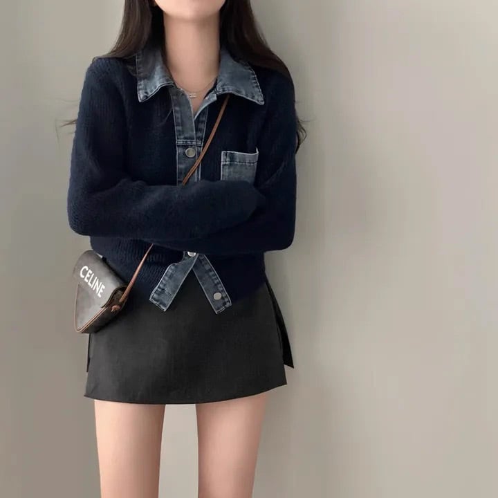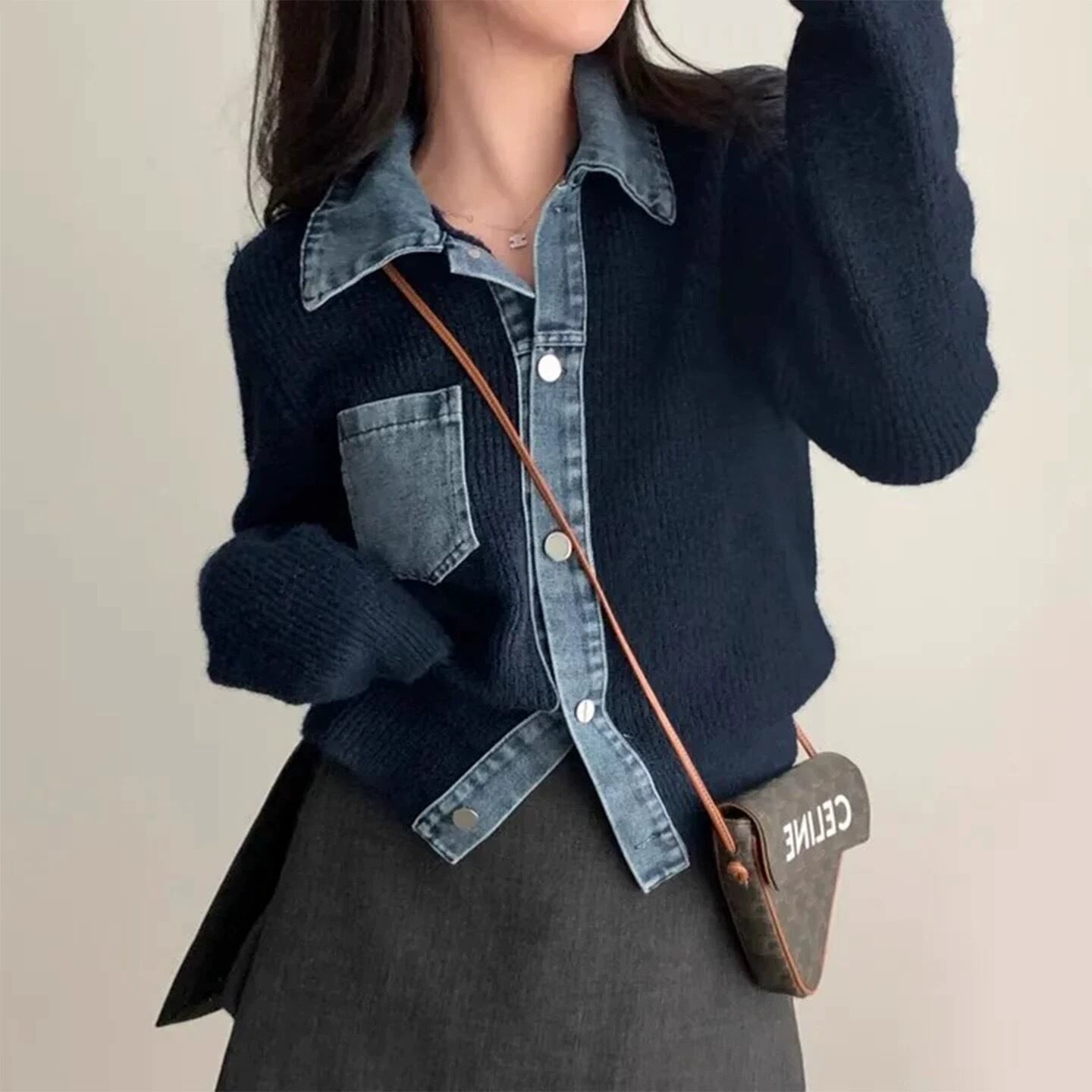 July おしゃれ デニムドッキングニットカーディガン 韓国ドラマ お揃い 2025 秋冬 個性的 オシャレ 韓国系ファッション 流行り 春服 july25102701 | パリジェンヌ、韓国系ファッション July