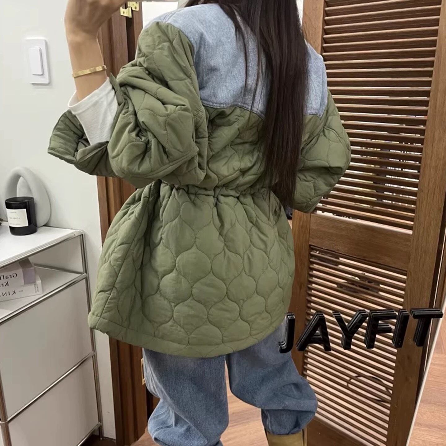 July おしゃれ 異素材mixデニムキルティングコート 暖かい キルティングボアアウター オーバーサイズ 韓国ドラマ お揃い 2025 秋冬 個性的 オシャレ 韓国系ファッション 流行り 春服 july25110301 | パリジェンヌ、韓国系ファッション July