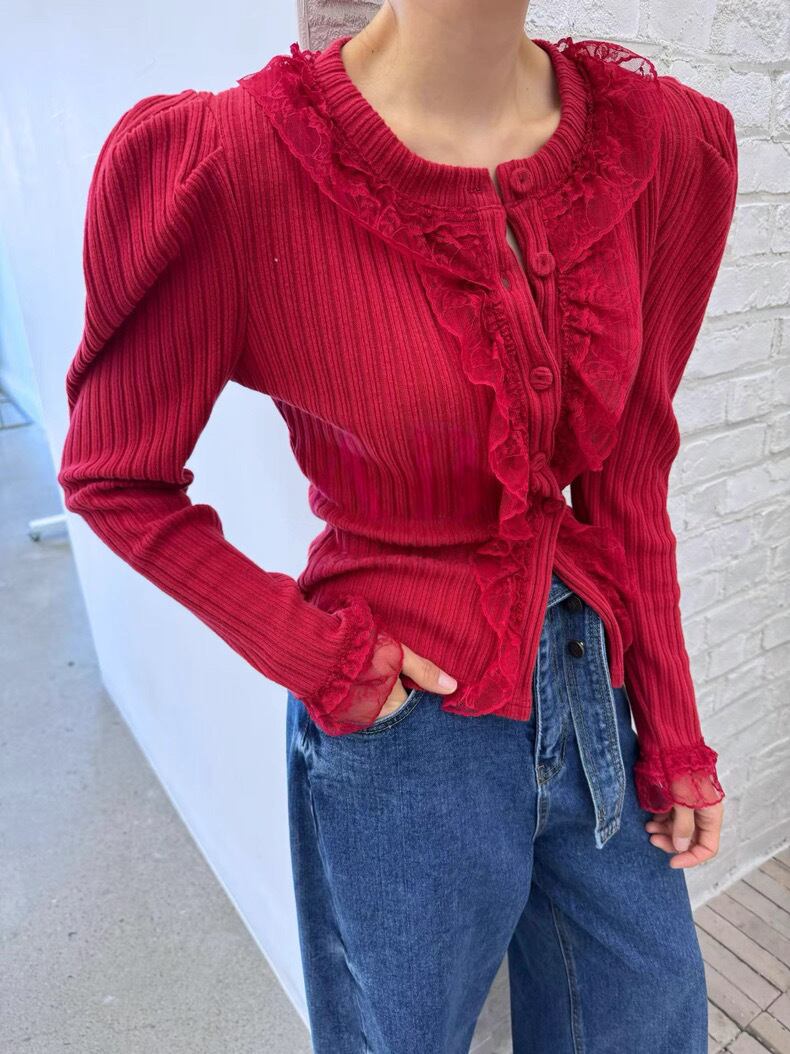 July おしゃれ フリルリブカーディガン アウター オーバーサイズ 韓国ドラマ お揃い 2025 秋冬 個性的 オシャレ 韓国系ファッション 流行り 春服 july25112101 | パリジェンヌ、韓国系ファッション July