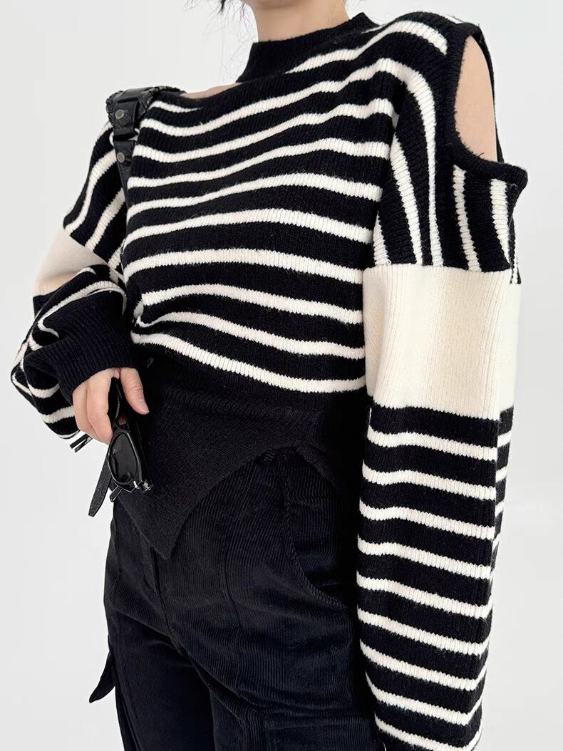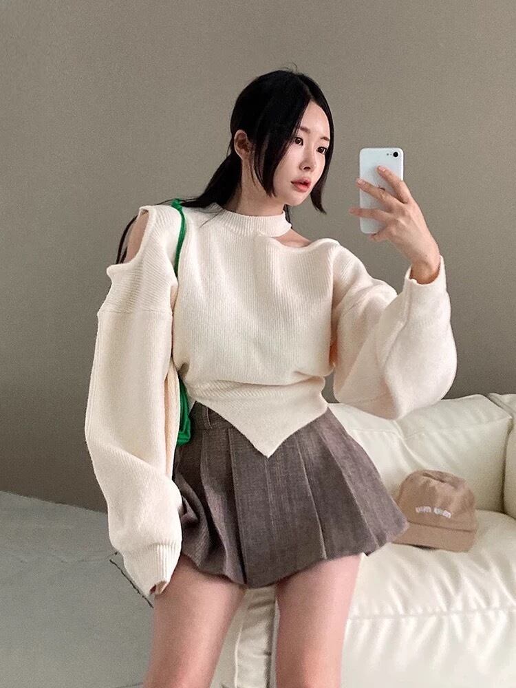 July おしゃれ 肩空きニットトップス 韓国ドラマ お揃い 2025 秋冬 個性的 オシャレ 韓国系ファッション 流行り 春服 july25122301 | パリジェンヌ、韓国系ファッション July