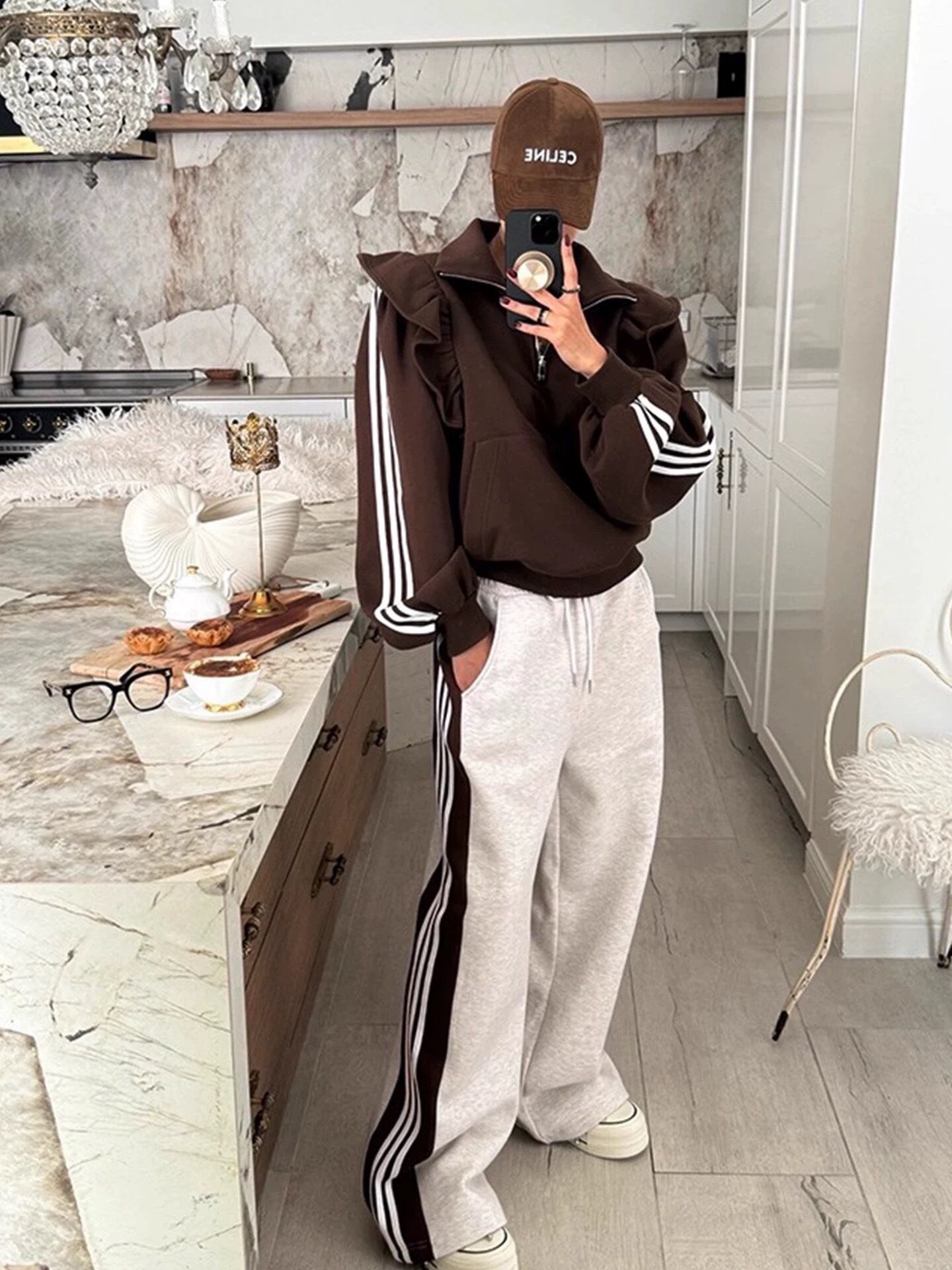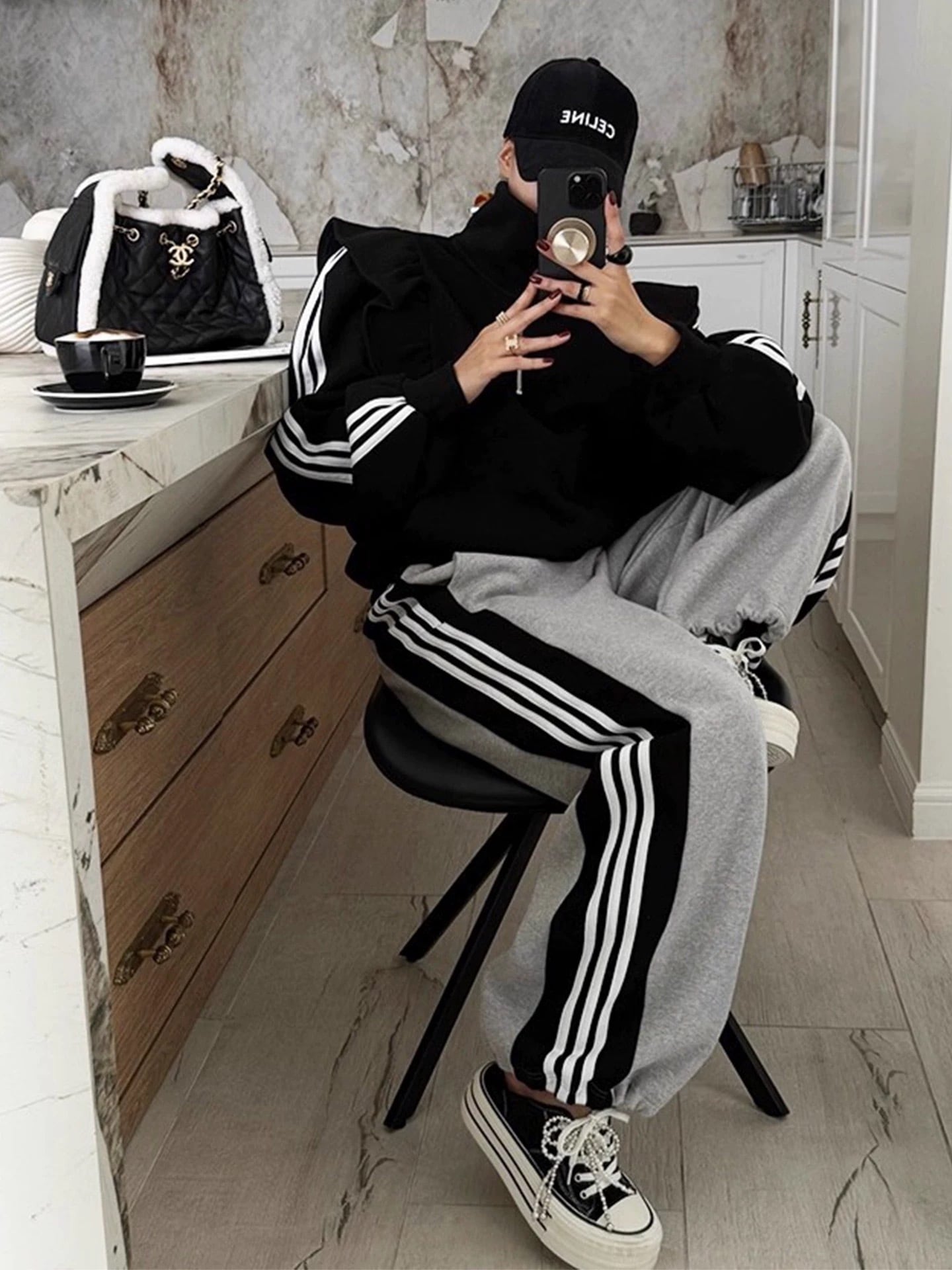 July おしゃれ ヴィンテージ風トレーナーパンツ セット 韓国ドラマ お揃い 2025 秋冬 個性的 オシャレ 韓国系ファッション 流行り 春服 july26011101