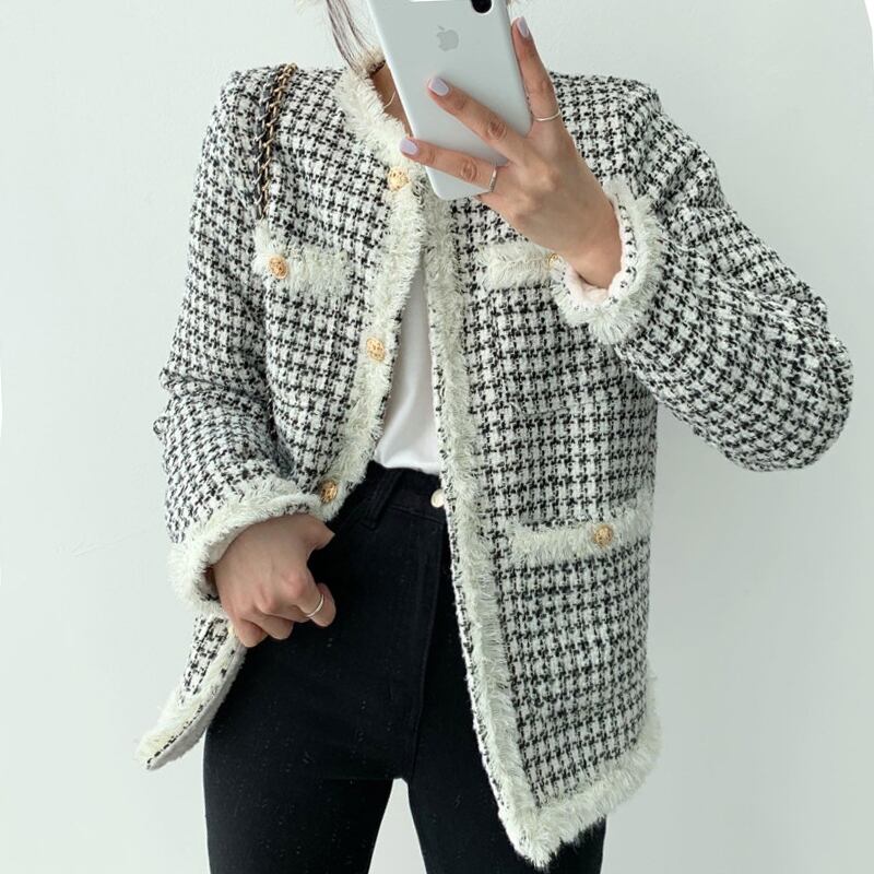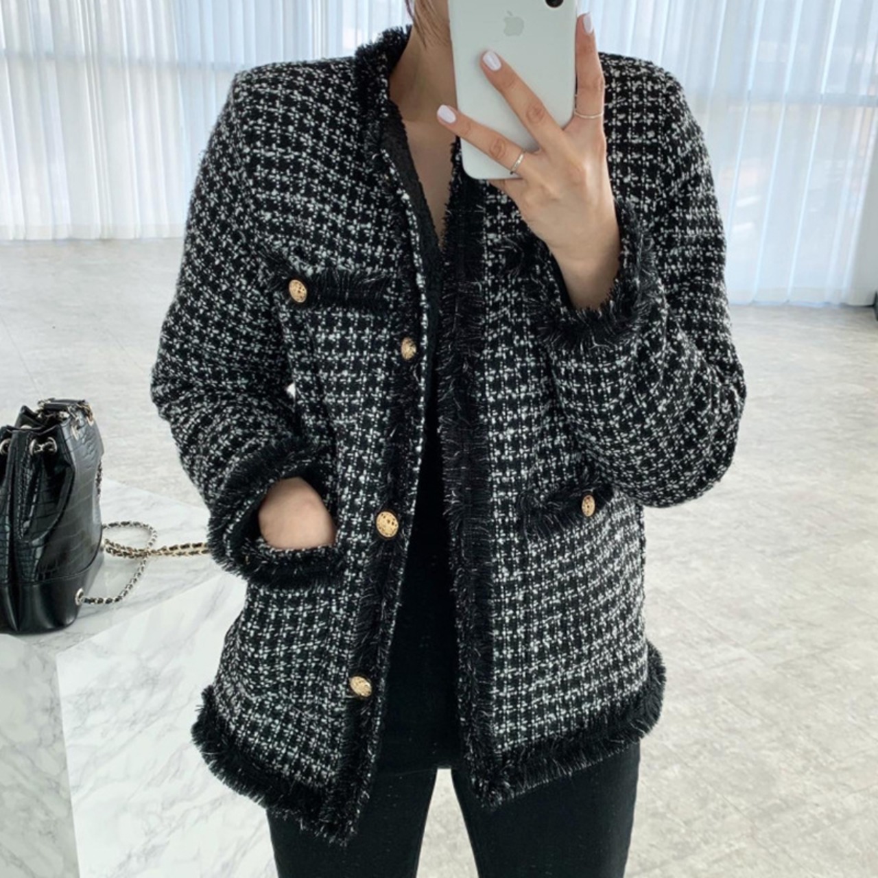 【韓国ファッション】大人可愛い オータムウィンタースタンダードラウンドネックルーズウールツィードジャケット レトロ 秋物 冬物 Oネック ♡ 韓国98823228556 | パリジェンヌ、韓国系ファッション July