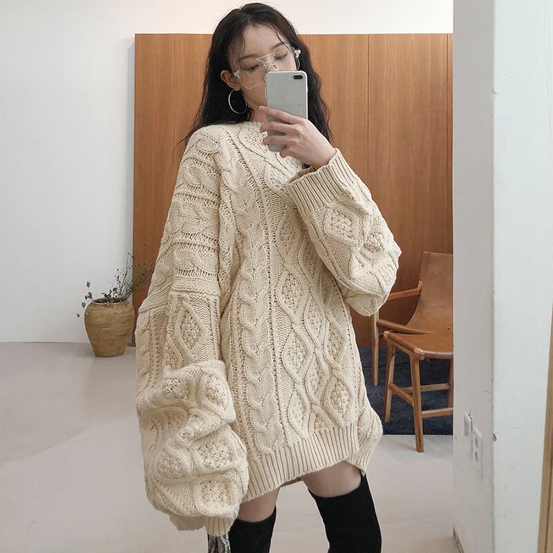 【韓国ファッション】大人可愛い スタンダードラウンドネックパターンルーズニットセーター レディース ロング レトロ Oネック ♡ 韓国35941142779 | パリジェンヌ、韓国系ファッション July