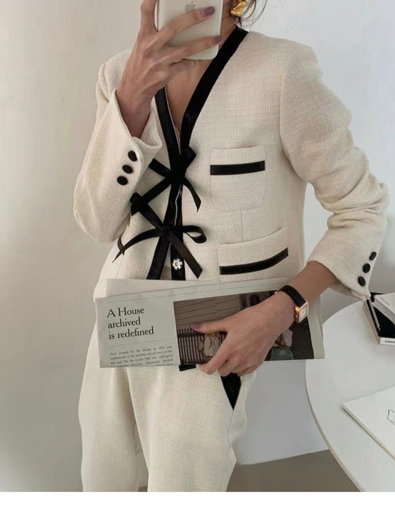【韓国ファッション】大人可愛い オータムVネックレザーショートジャケット レッド リボン 秋物 ステッチ ポケット多め マルチポケット ♡ 韓国92435176576 | パリジェンヌ、韓国系ファッション July