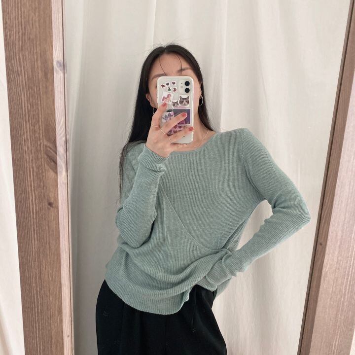 【韓国ファッション】大人可愛い オータムラウンドネックルーズセーター レディース ロング 秋物 Oネック オフショルダー ステッチ ♡ 韓国14732325981 | パリジェンヌ、韓国系ファッション July