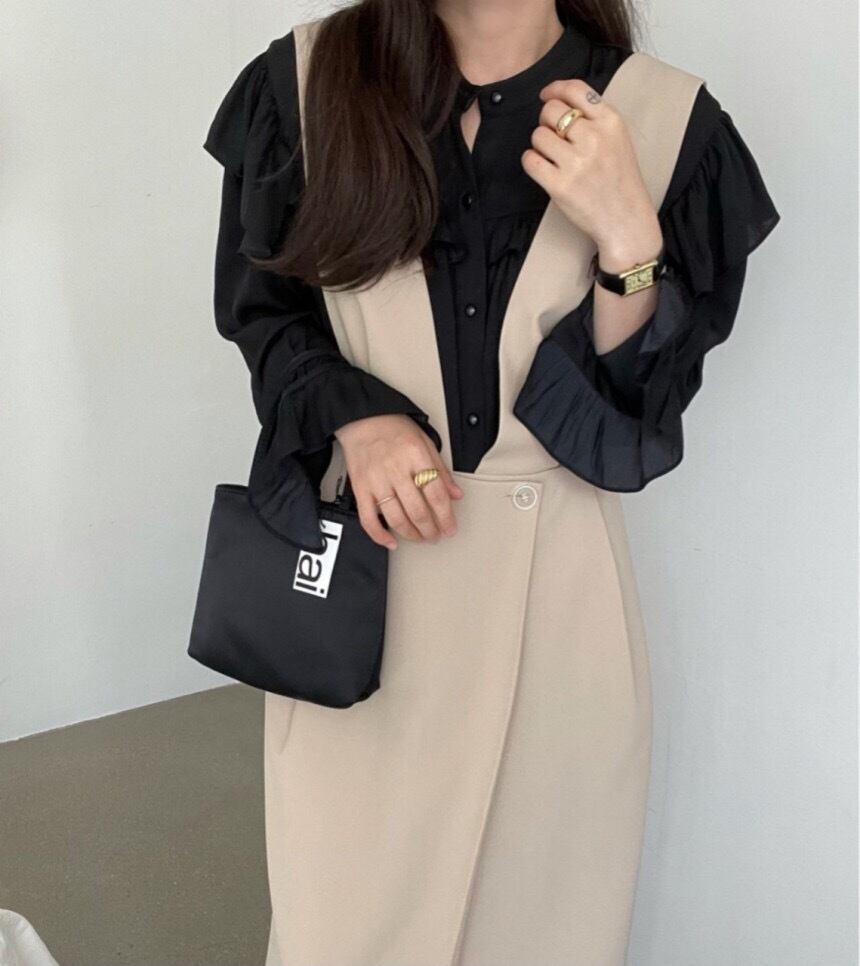 色:白のシャツ,黒いシャツ,カーキ色のスカート,黒スカート