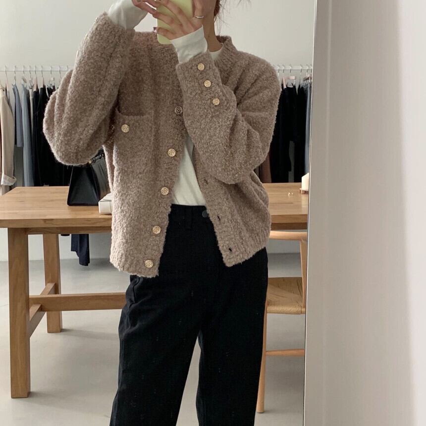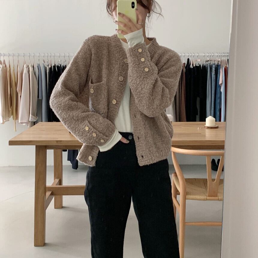 【韓国ファッション】大人可愛い オータムボタンラウンドネックポケットカーディガンセーター コート ロング 秋物 Oネック ♡ 韓国66911085221 | パリジェンヌ、韓国系ファッション July