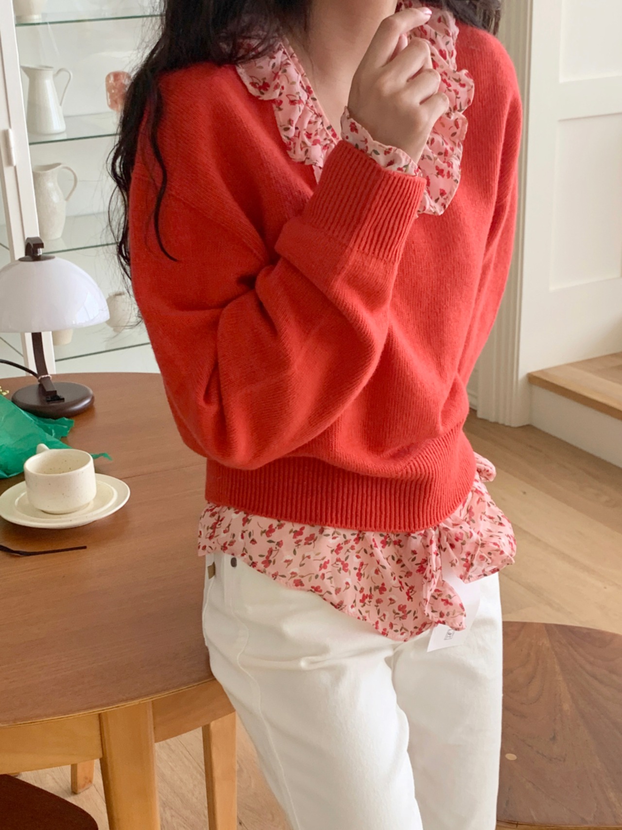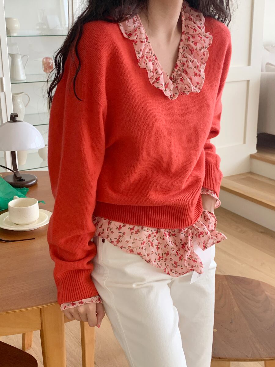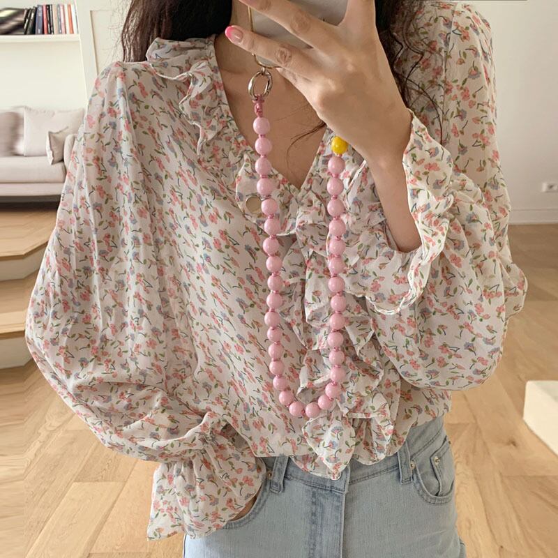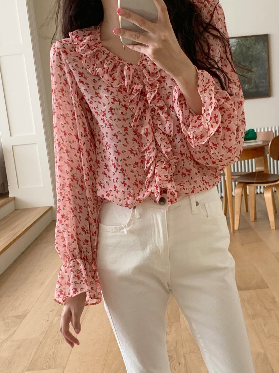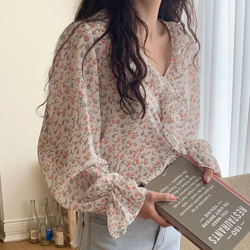 【韓国ファッション】大人可愛い オータムVネックラッフルルーズフローラルシャツ レディース 大人ガーリー スウィート キュート カジュアル 秋物 花柄 ステッチ ♡ 韓国22255774665 | パリジェンヌ、韓国系ファッション July