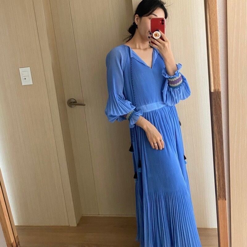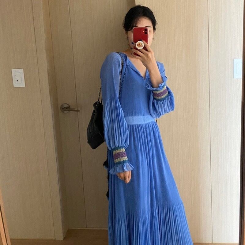 【韓国ファッション】大人可愛い オータムスタンダードVネックハイウェストウェストスリーブプリーツドレス ランタンスリーブ レトロ エレガント 秋物 ♡ 韓国23251485071 | パリジェンヌ、韓国系ファッション July