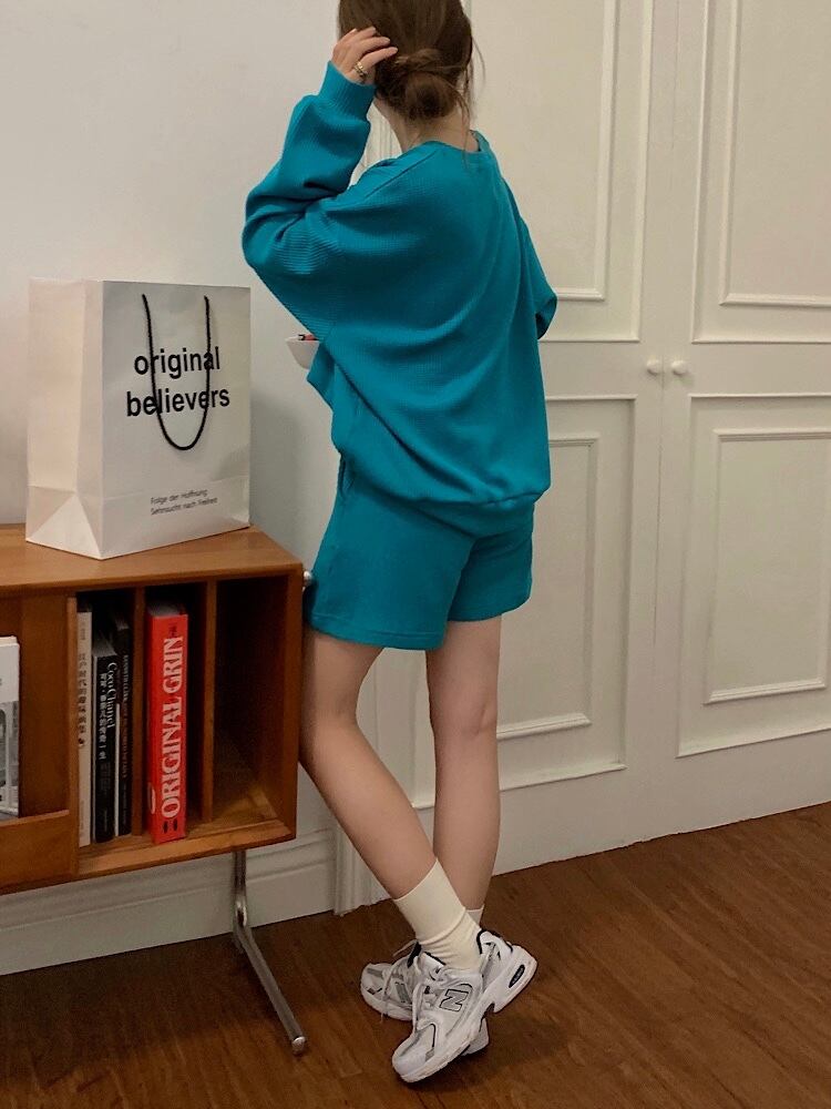 【韓国ファッション】大人可愛い オータムラウンドネックルーズセーター ハイウェストショーツ ロング 秋物 ブルマー Oネック ♡ 韓国4535154551 | パリジェンヌ、韓国系ファッション July