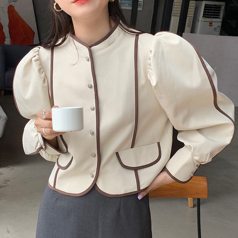 【韓国ファッション】大人可愛い オータムスタイルスタンドカラーカラーラインルーズスリーブショートジャケット レッド 秋物 ♡ 韓国98627650514 | パリジェンヌ、韓国系ファッション July