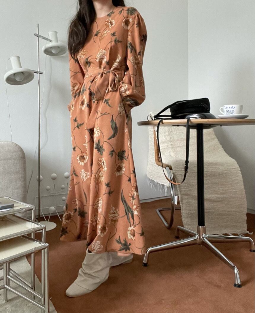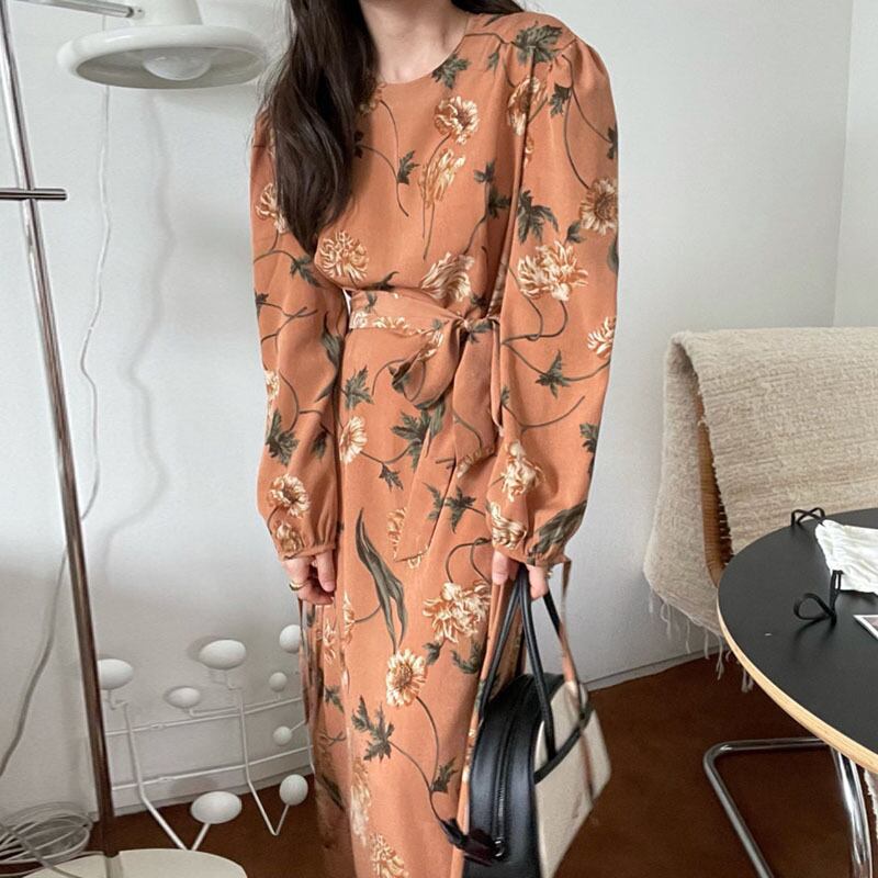 【韓国ファッション】大人可愛い オータムスタンダードラウンドネックプリント柄カジュアルウェストロングドレス スカート レトロ レース 秋物 Oネック レースアップ ♡ 韓国30021955581 | パリジェンヌ、韓国系ファッション July