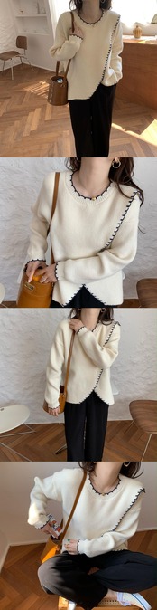 【韓国ファッション】大人可愛い ラウンドネックプルオーバー カラーサイドスリットルーズニットセーター レディース ロング エレガント Oネック ♡ 韓国76230611903 | パリジェンヌ、韓国系ファッション July