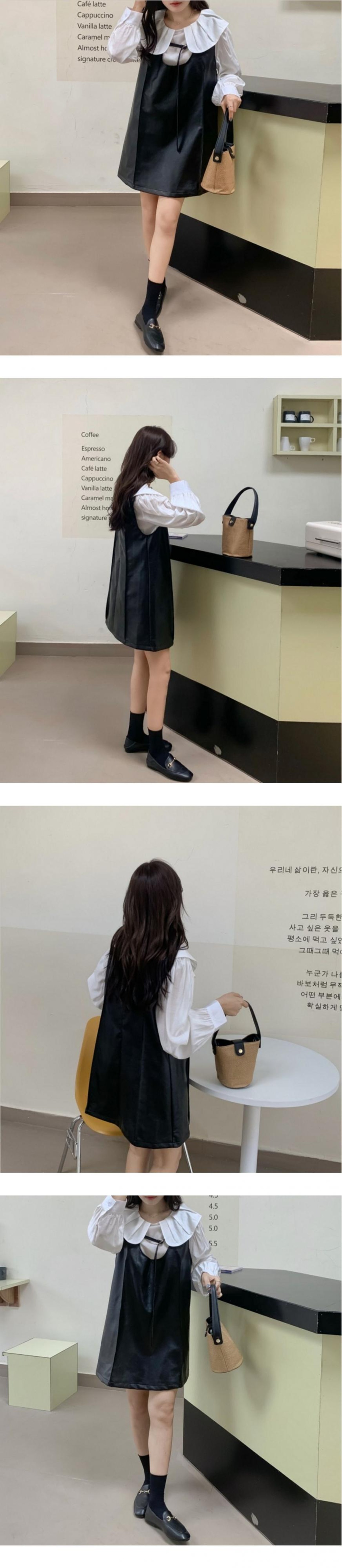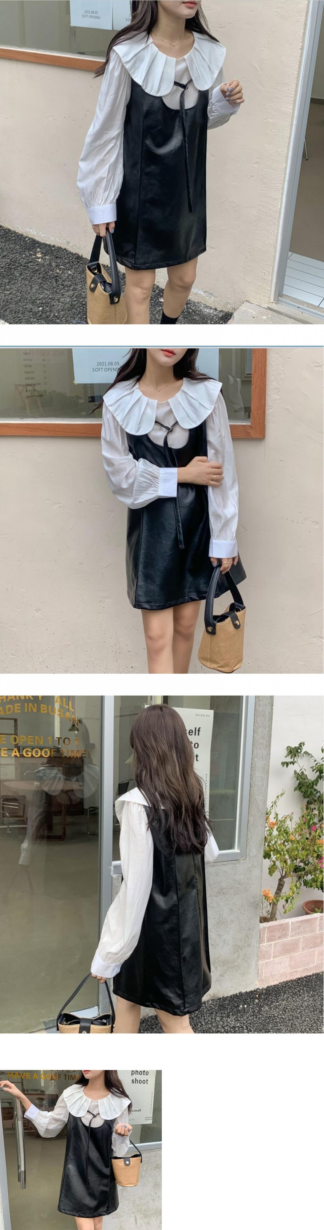 色:白のシャツ,カーキ色のシャツ,カーキレザースカート,黒革のスカート