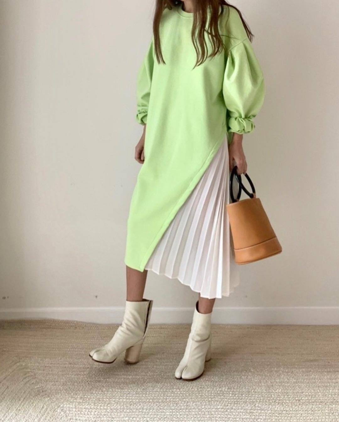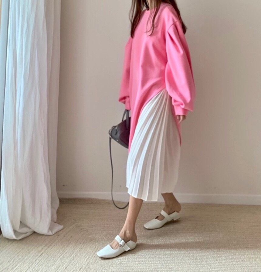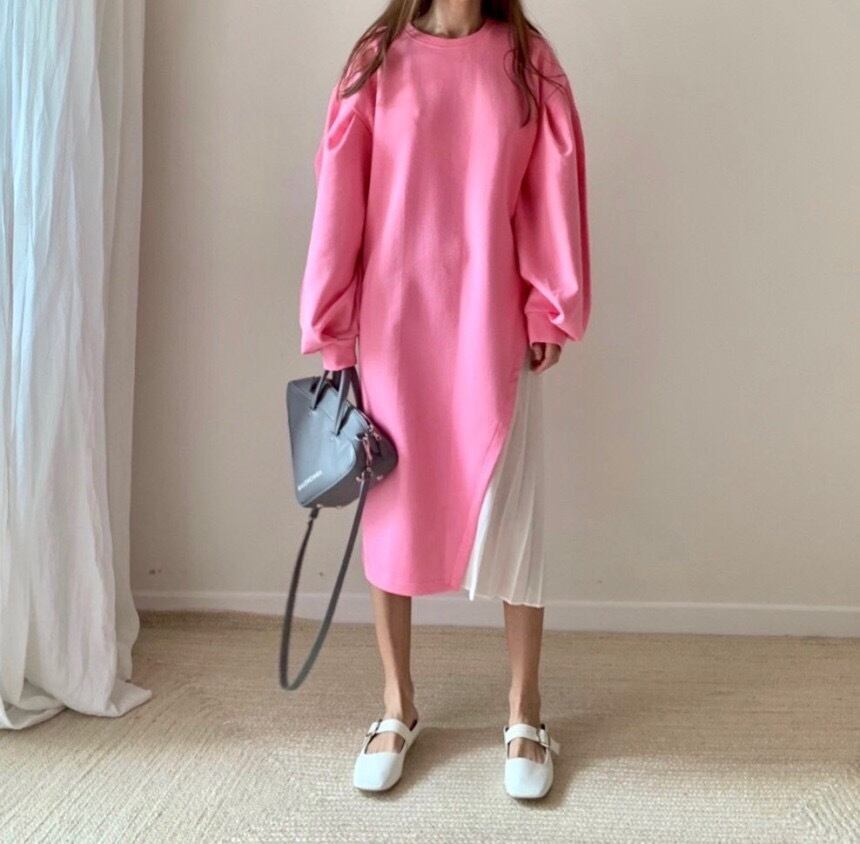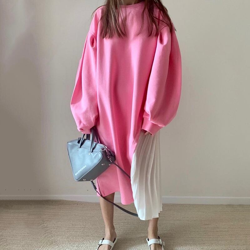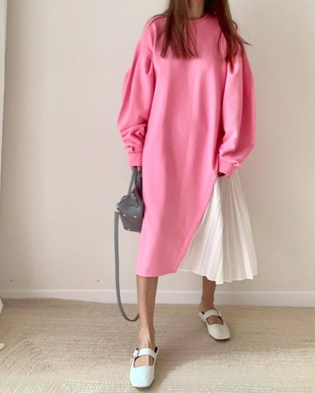 【韓国ファッション】大人可愛い オータムラウンドネックルーズカジュアルスリーブサイドシフォンプリーツセーター ドレス 秋物 Oネック ステッチ ♡ 韓国62821125823 | パリジェンヌ、韓国系ファッション July