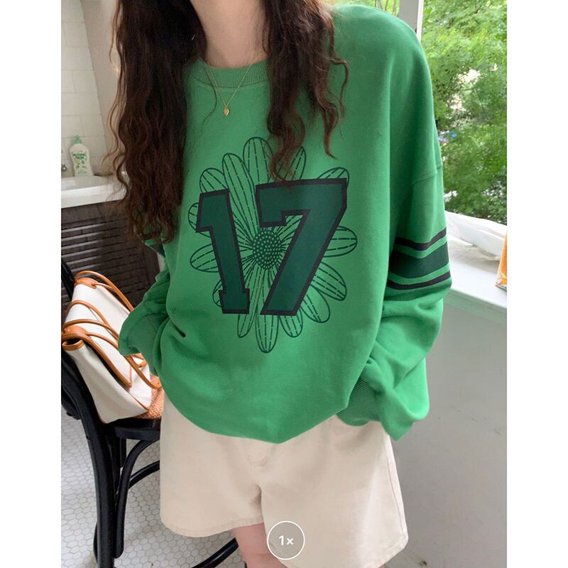 韓国服 オータムグリーンFlowerデザイン ルーズラウンドネックセーター プリント柄ブラウス 秋物 Oネック フラワーデザイン ♡ nanfeng35878879708 | パリジェンヌ、韓国系ファッション July