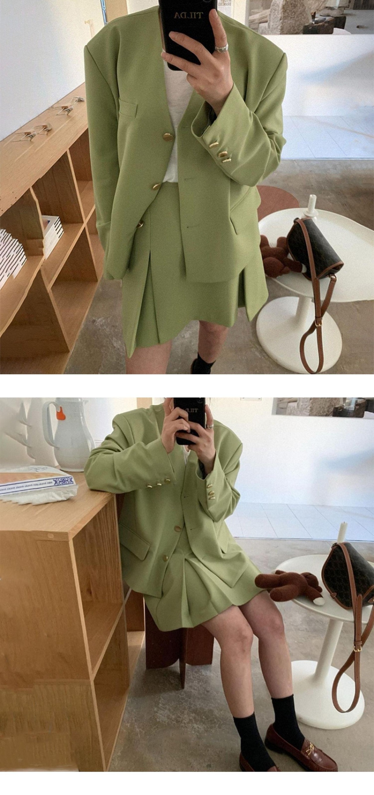 色:グリーンジャケット,青いコート,緑のスカート,青いスカート
