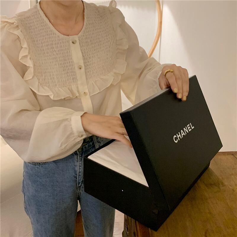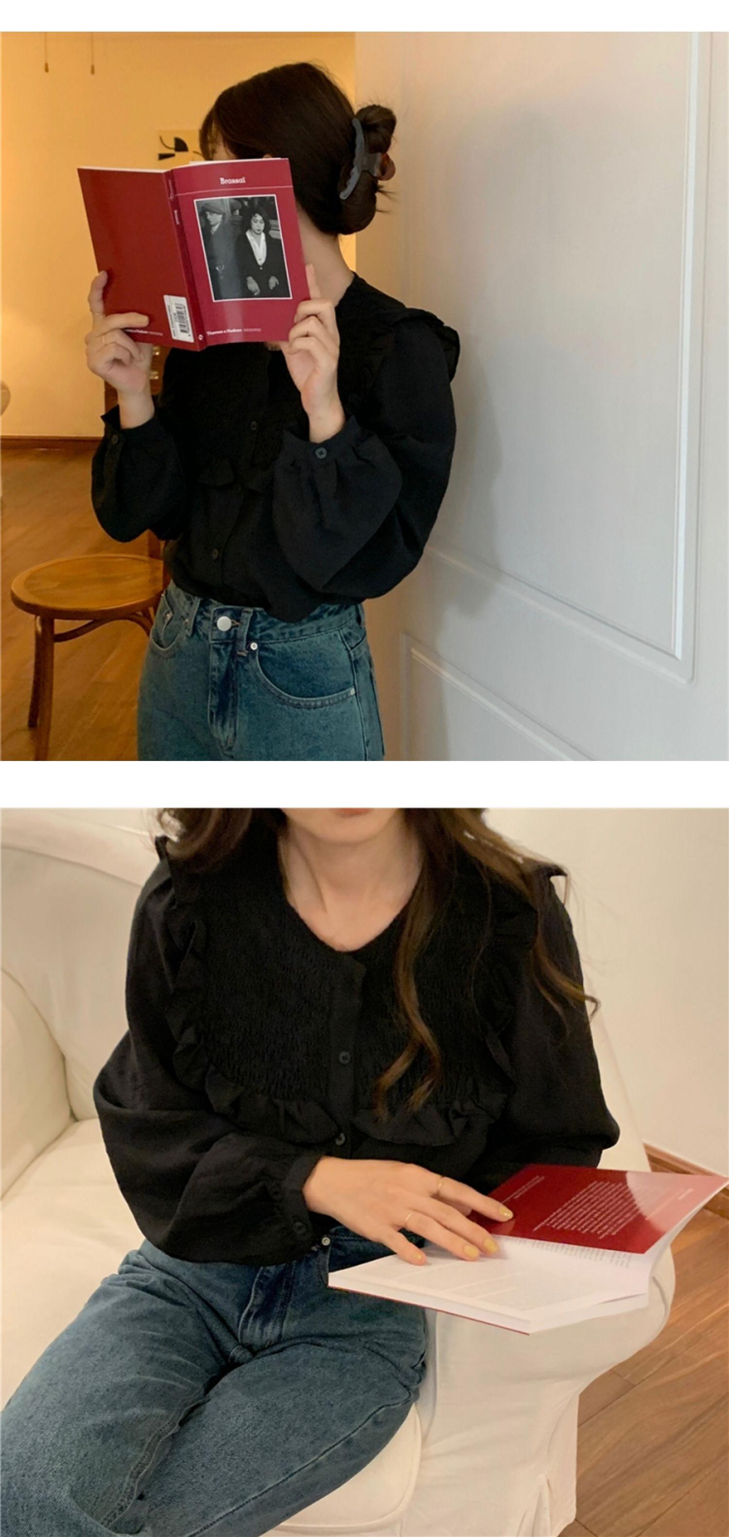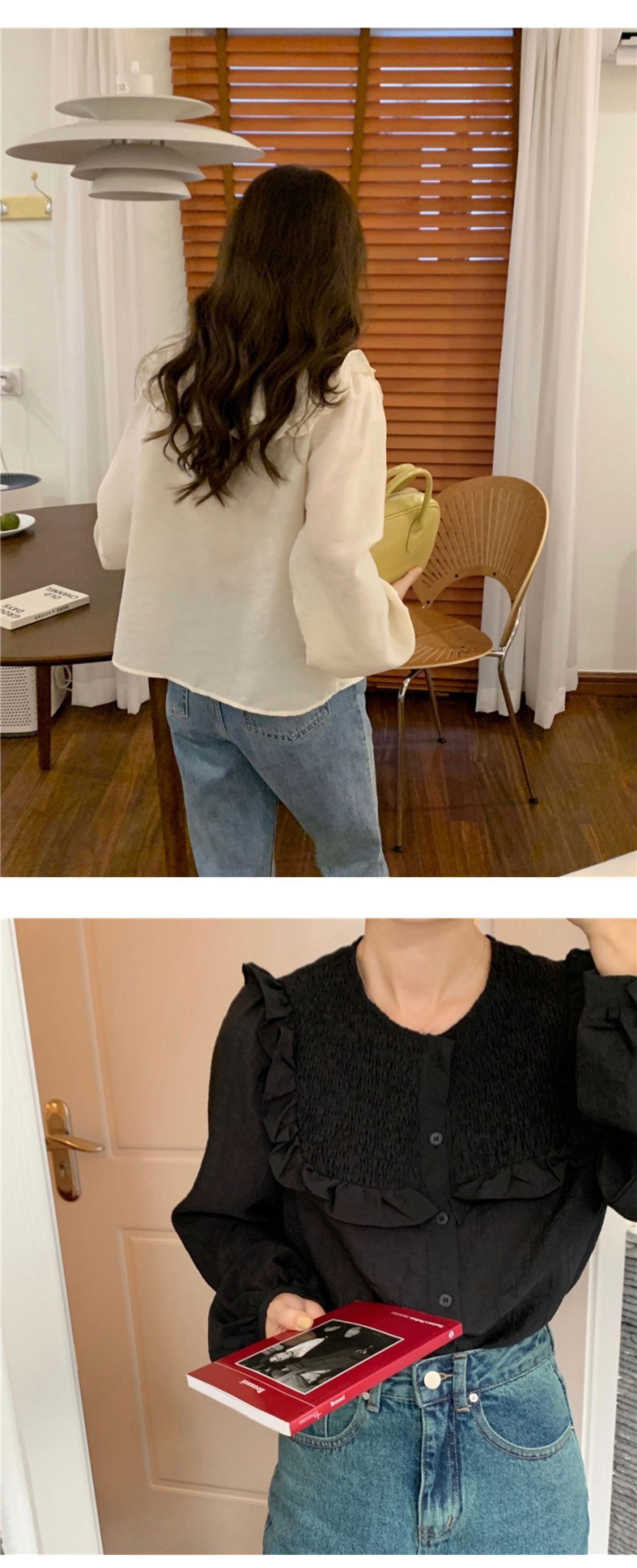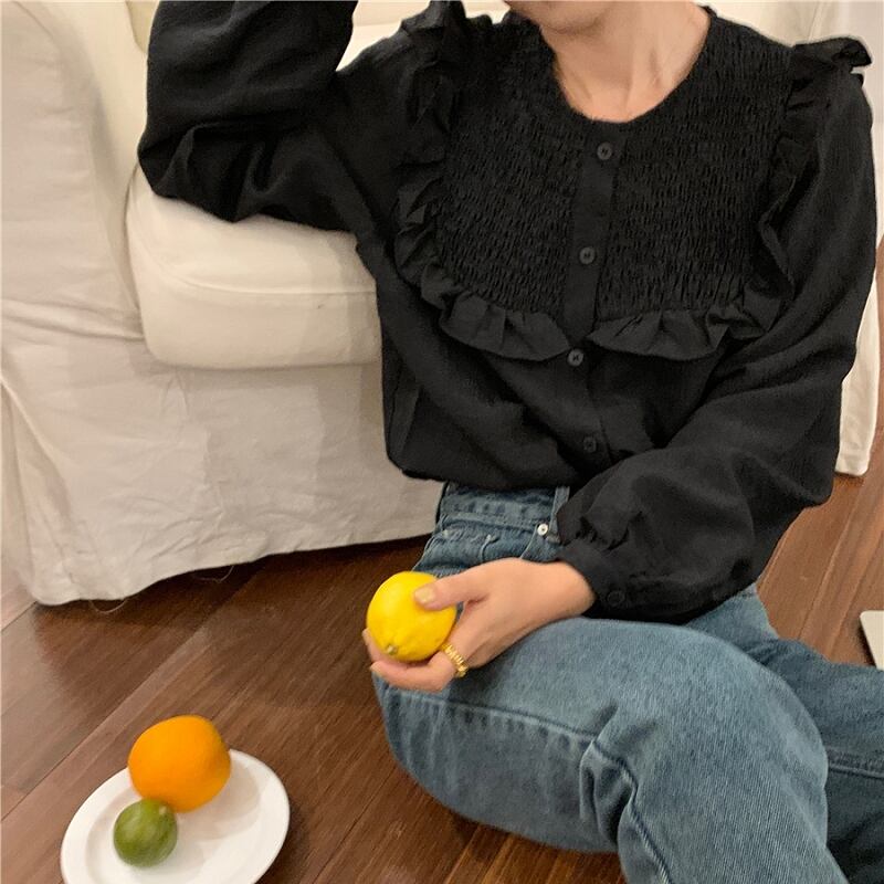 韓国服 ラウンドネックストライププリーツソリッド カラーブラウス オータムスタンダードシャツ ロング レトロ 秋物 Oネック ソリッドカラー ♡ nanfeng64296701003 | パリジェンヌ、韓国系ファッション July