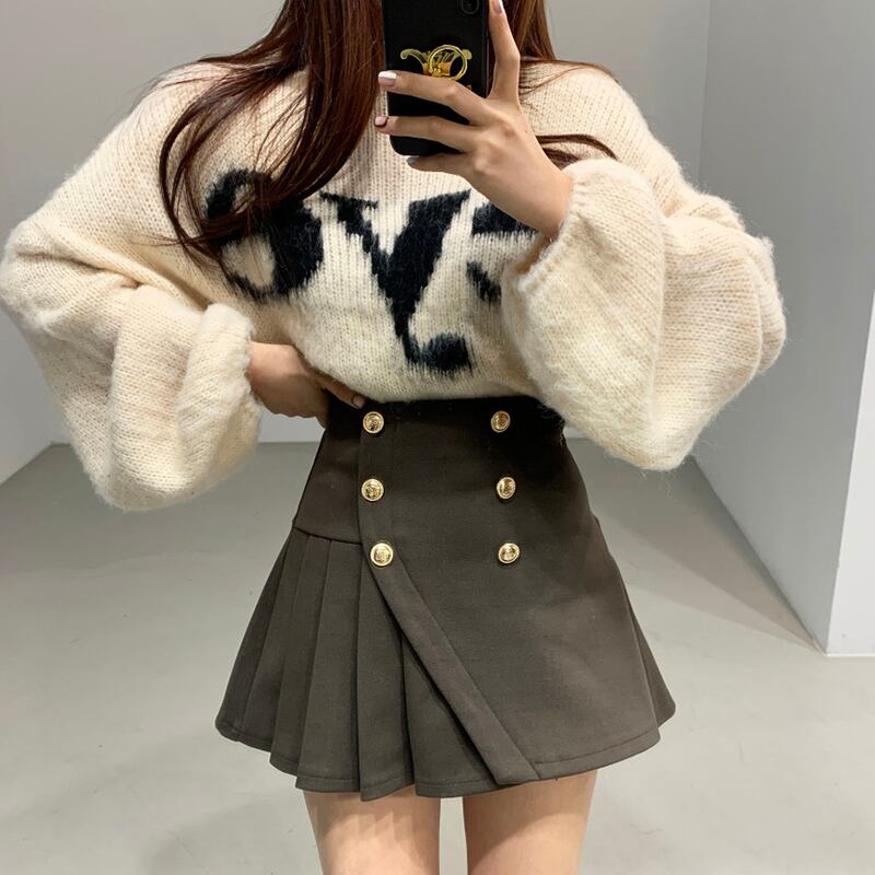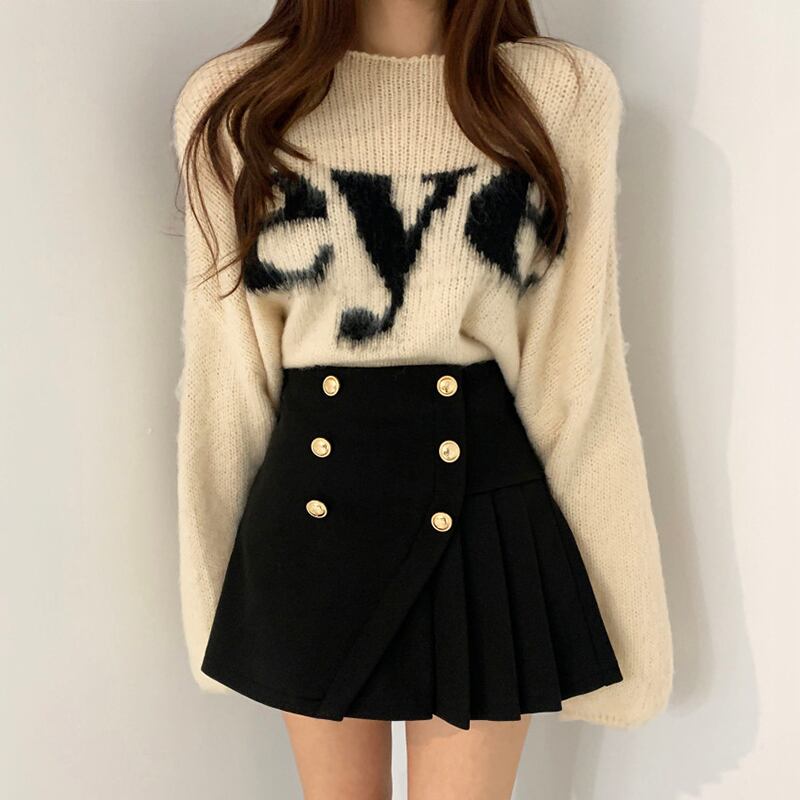 【韓国ファッション】大人可愛い ラウンドネックルーズセーター ハイウェストウェストプリーツスカート レディース Oネック ♡ 韓国25742925215 | パリジェンヌ、韓国系ファッション July