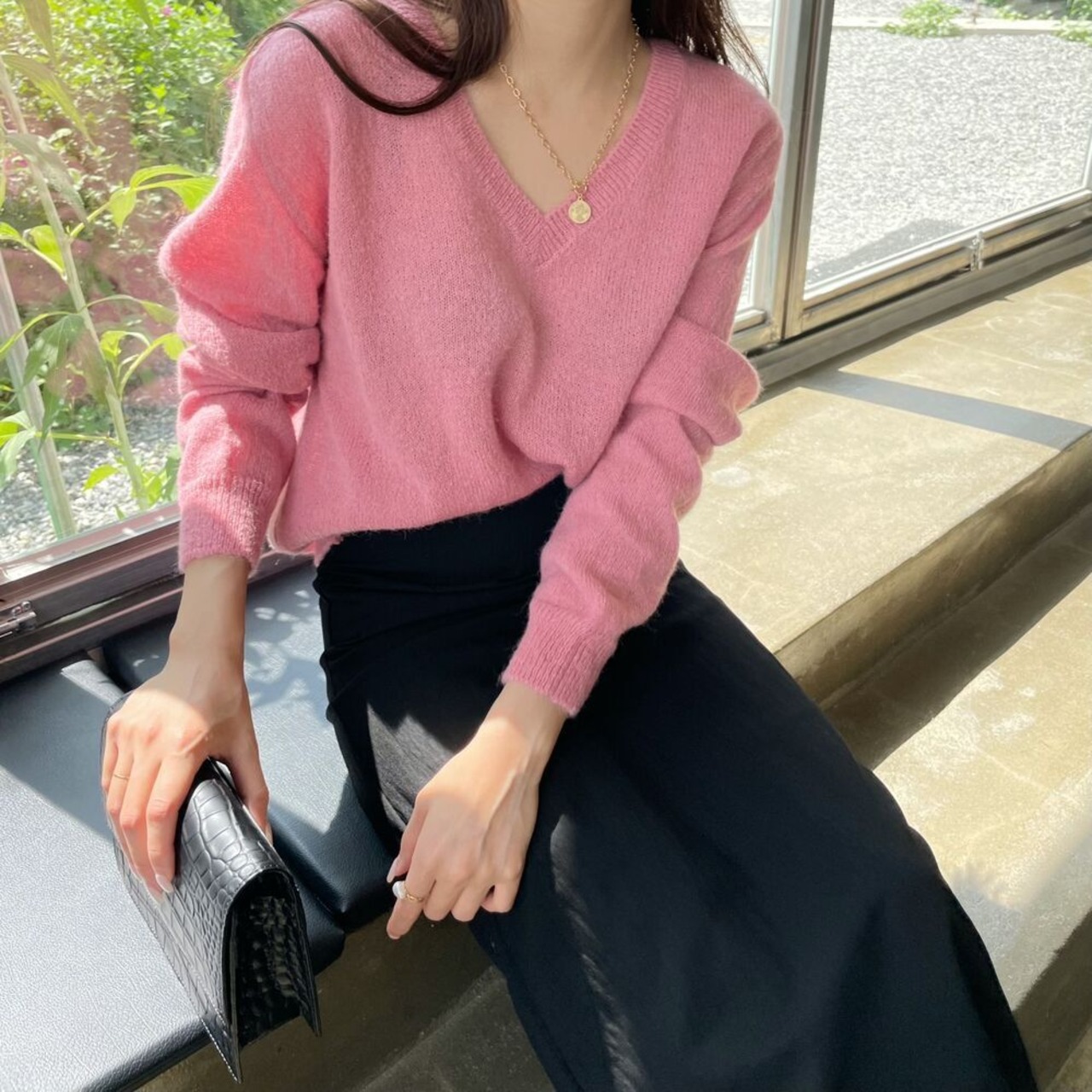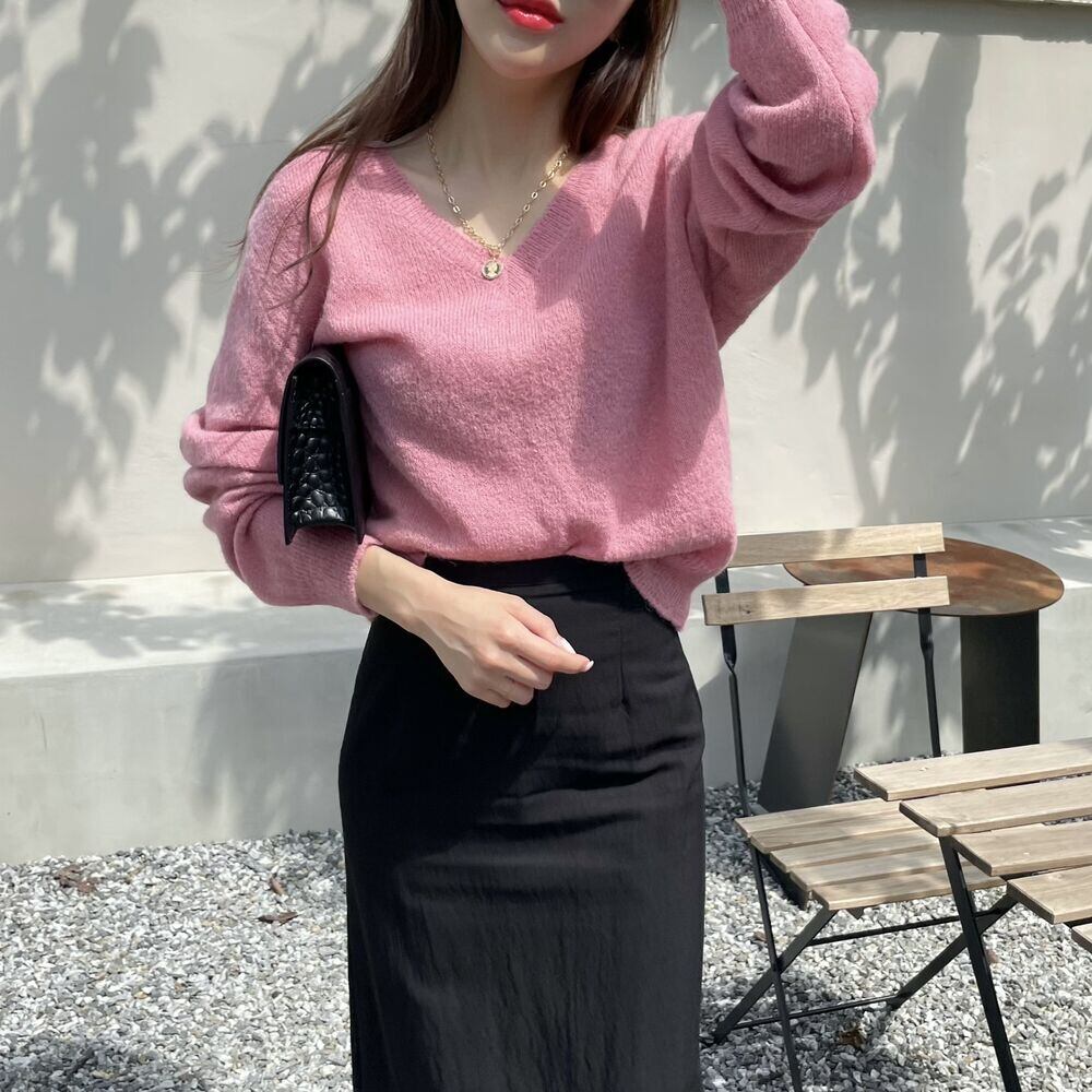 【韓国ファッション】大人可愛い オータムVネックルーズロングニットセーター ハイウェストウェストスカート 大人ガーリー スウィート キュート カジュアル 秋物 ♡ 韓国10895670047 | パリジェンヌ、韓国系ファッション July