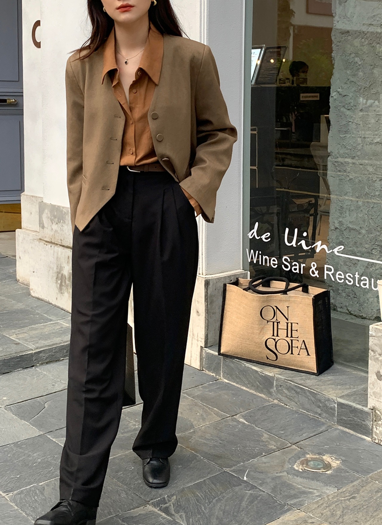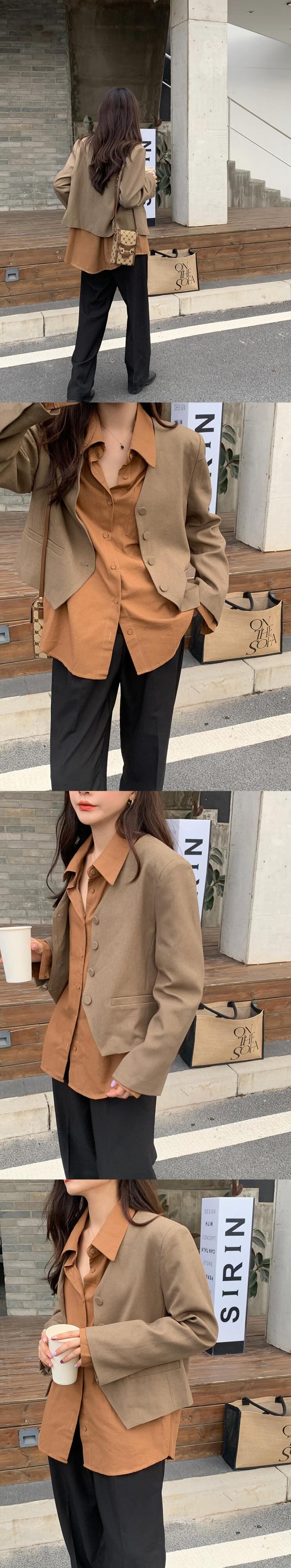 色:コーヒースーツ,カボチャシャツ