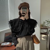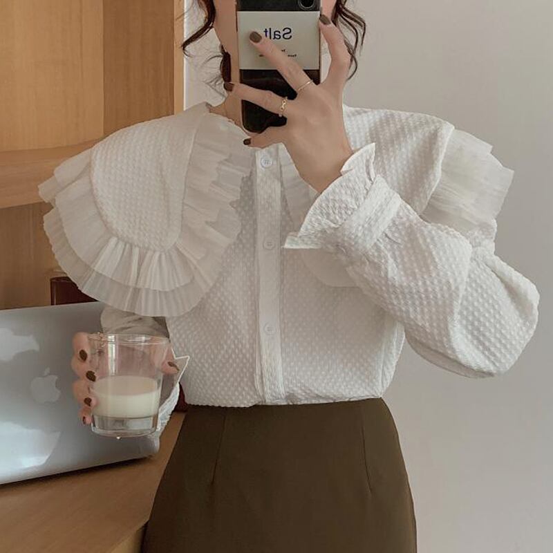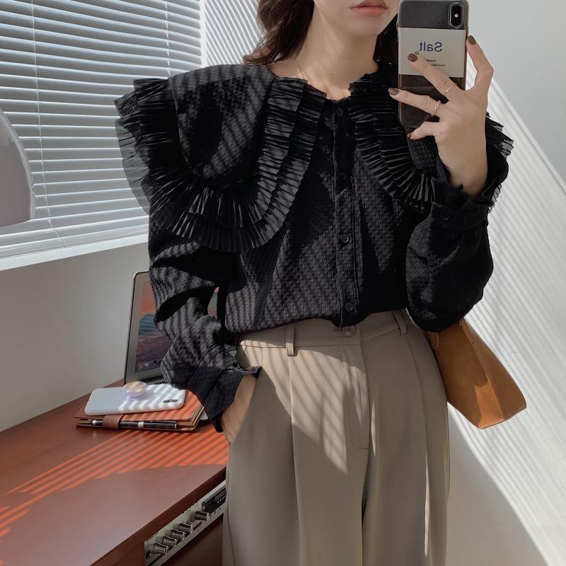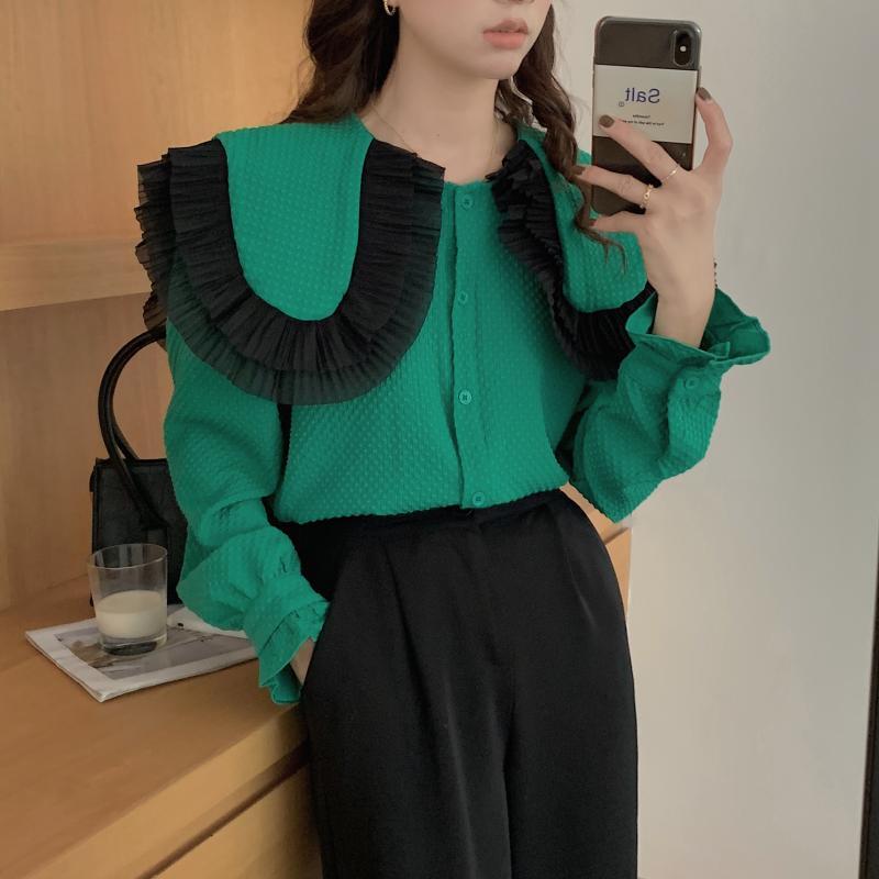 【韓国ファッション】大人可愛い スタイルダブルプリーツレースカラーシングルブレストルーズショートシャツ レディース ステッチ ♡ 韓国75172725894 | パリジェンヌ、韓国系ファッション July