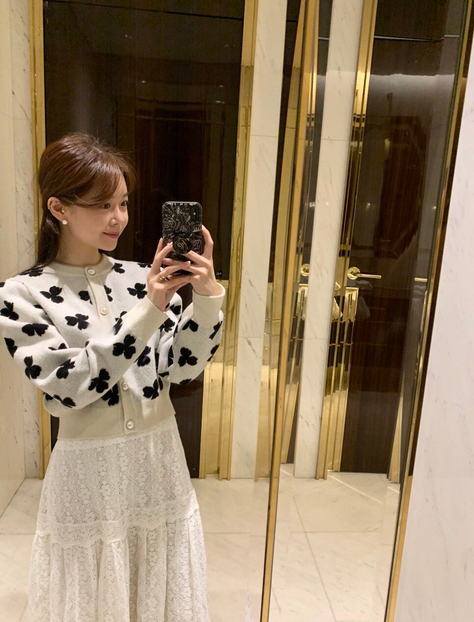 【韓国ファッション】大人可愛い ラウンドネックジャカードルーズパールボタンニットセーター レディース ロング Oネック 真珠 ♡ 韓国44416153391 | パリジェンヌ、韓国系ファッション July