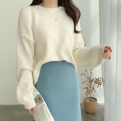 【韓国ファッション】大人可愛い オータムラウンドネックプルオーバー ルーズバックニットセーター レディース ロング 秋物 Oネック ♡ 韓国42967105288 | パリジェンヌ、韓国系ファッション July