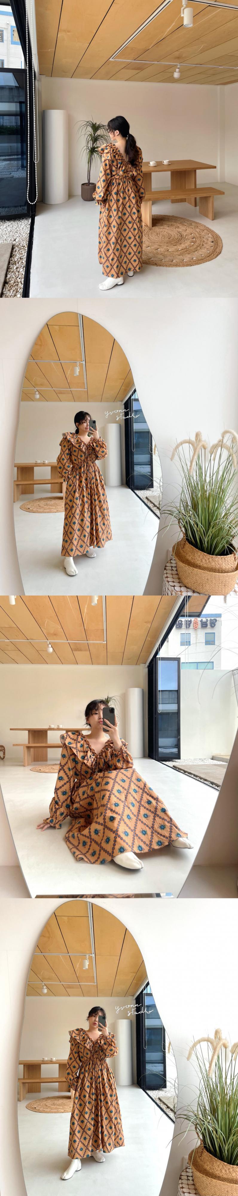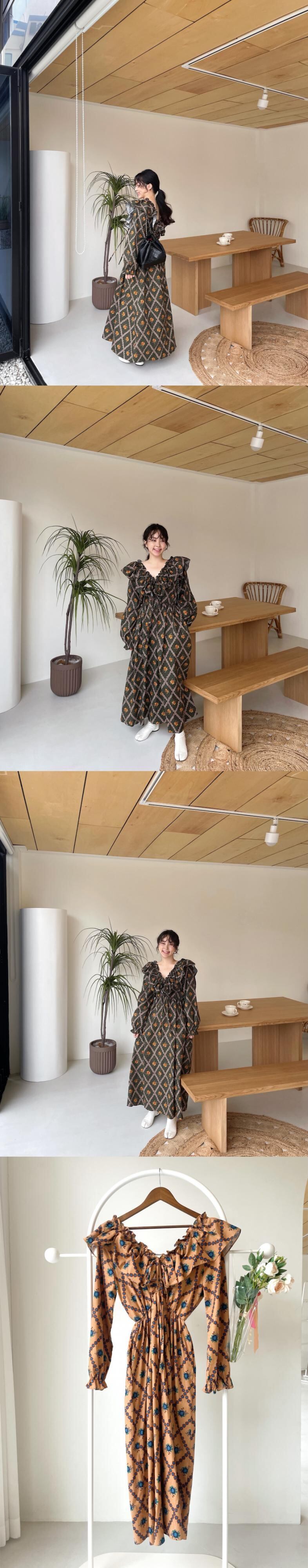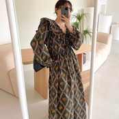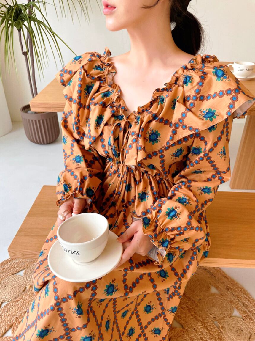 【韓国ファッション】大人可愛い オータムスタンダード薄手Vネックハイウェストウェストスリーブフローラルドレス ロングスカート レトロ 秋物 花柄 ♡ 韓国81404814255 | パリジェンヌ、韓国系ファッション July