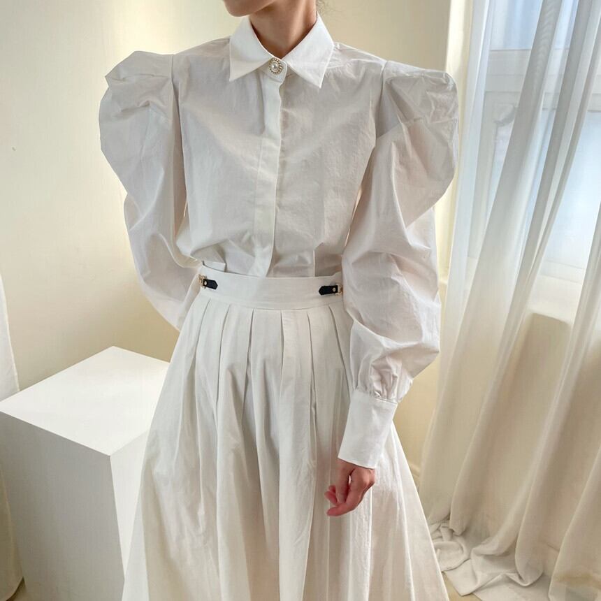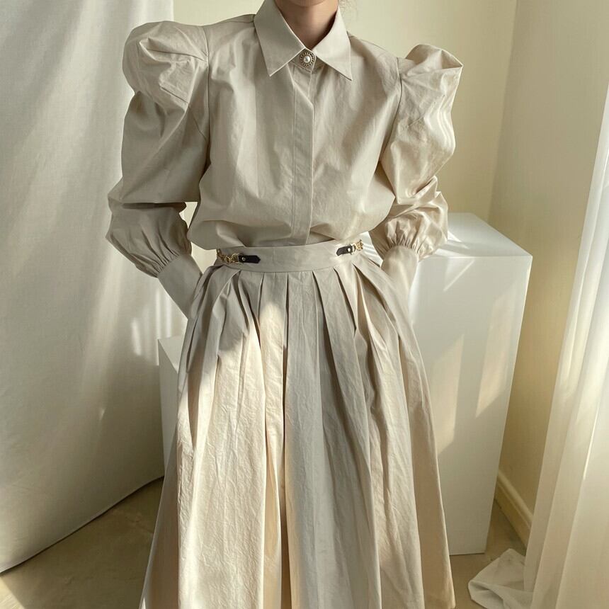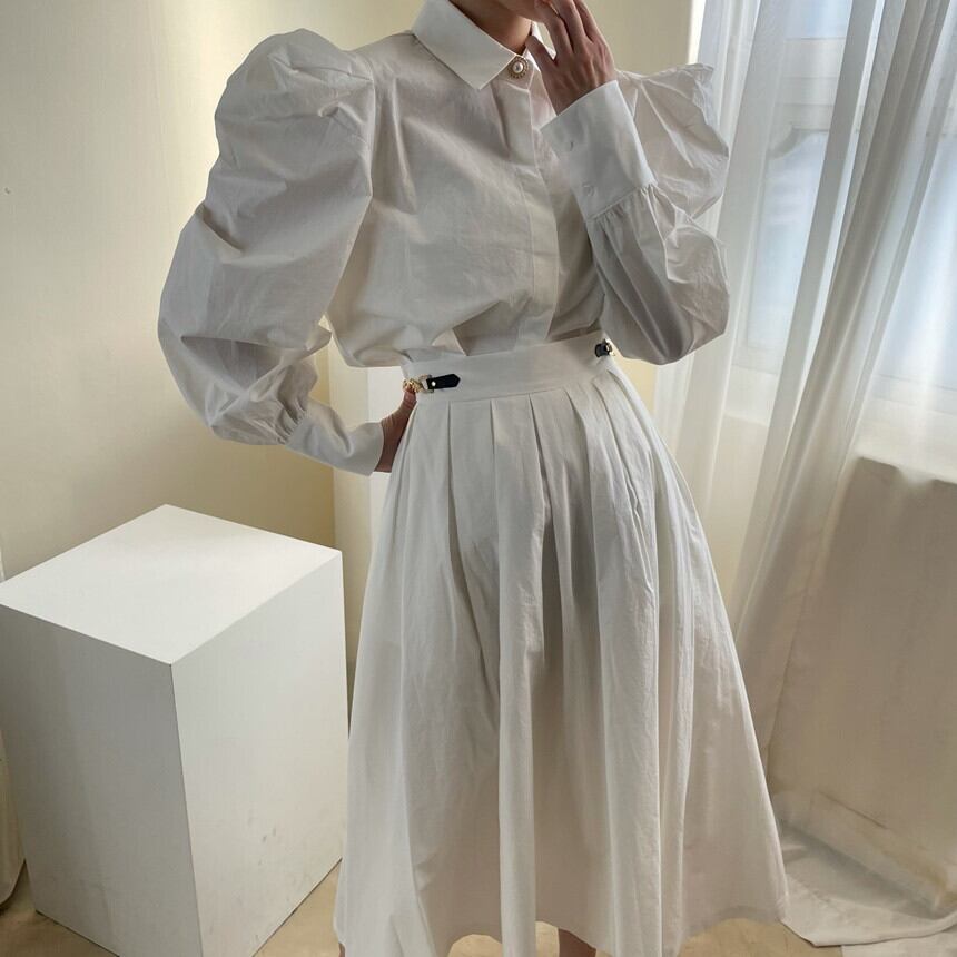 【韓国ファッション】大人可愛い パールボタンルーズスリーブシャツ ハイウェストウェストチェーン プリーツスカート ロング 真珠 ♡ 韓国50602895266 | パリジェンヌ、韓国系ファッション July