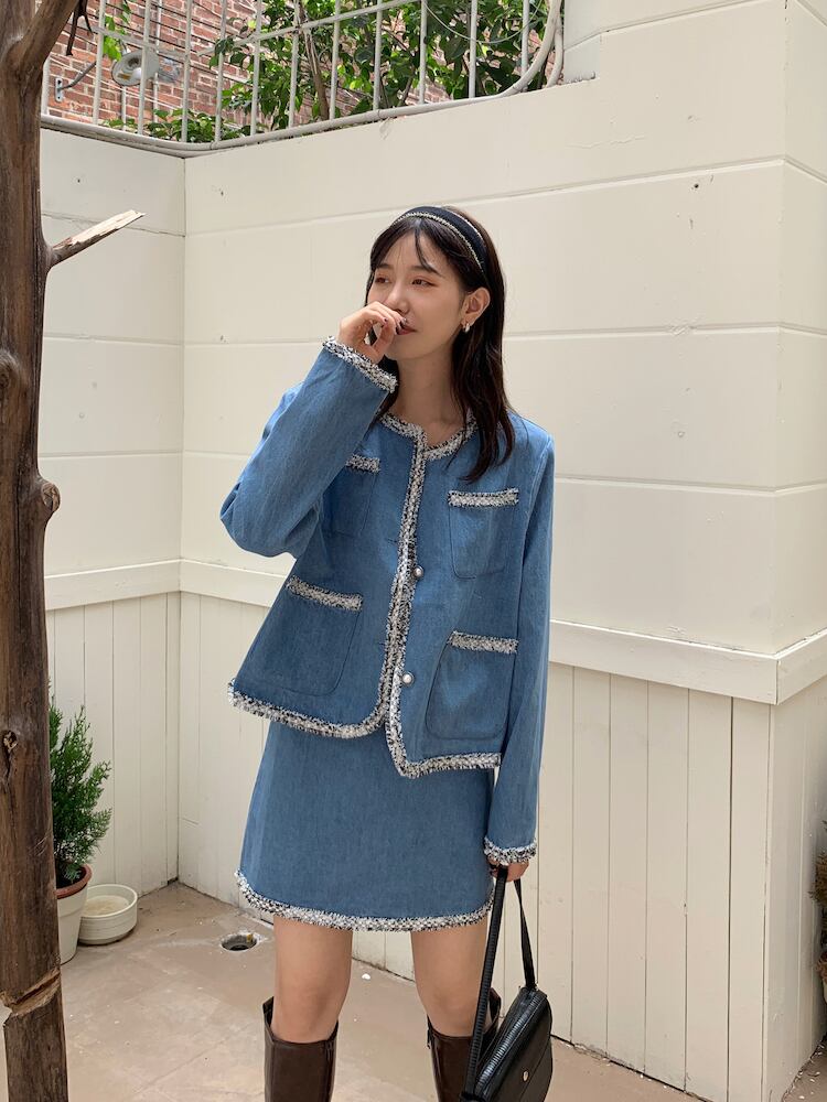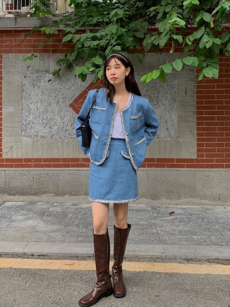 【韓国ファッション】大人可愛い スタンダードパールボタンジャケット ハイウェストスカート レトロ 真珠 ポケット多め マルチポケット ♡ 韓国74754356611 | パリジェンヌ、韓国系ファッション July