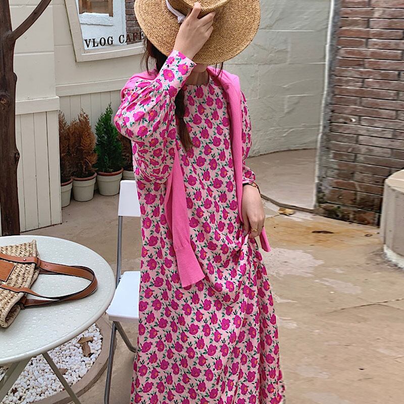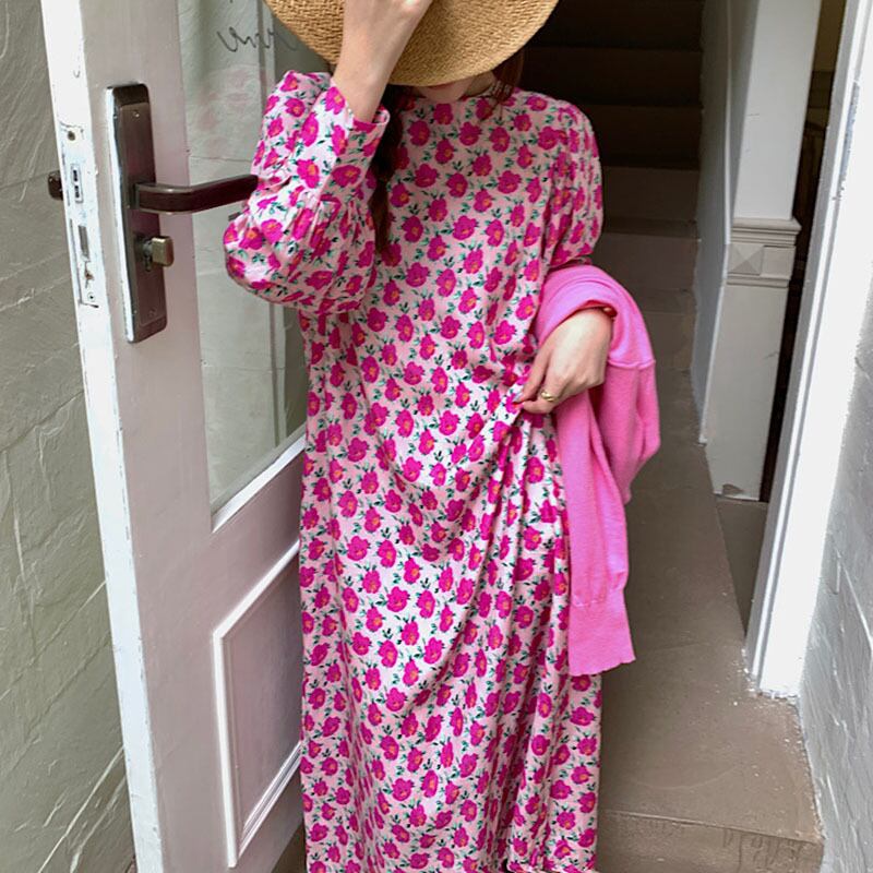 【韓国ファッション】大人可愛い オータムラウンドネックルーズカジュアルスリーブドレス ロングスカート 大人ガーリー スウィート キュート 秋物 Oネック フラワーデザイン ♡ 韓国10869063432 | パリジェンヌ、韓国系ファッション July