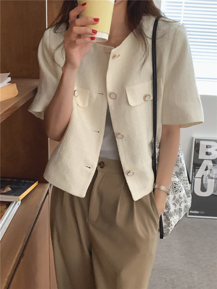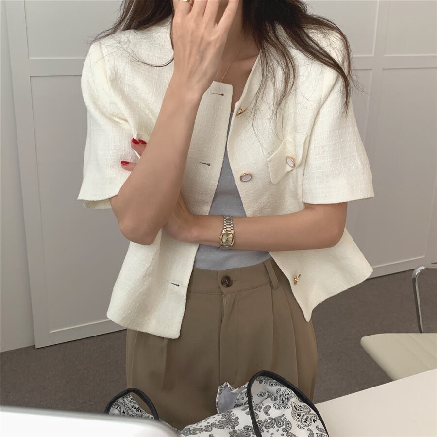 【韓国ファッション】大人可愛い サマーラウンドネックソリッド カラールーズカジュアルジャケット 夏物 Oネック ソリッドカラー ♡ 韓国77199519143 | パリジェンヌ、韓国系ファッション July