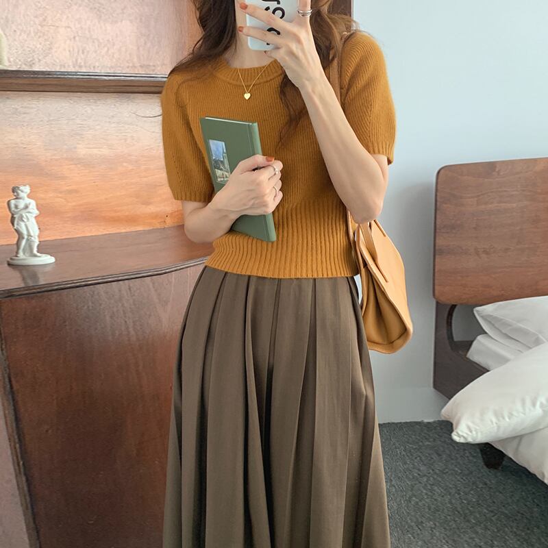 【韓国ファッション】大人可愛い スタンダードラウンドネックルーズロングセーター ハイウェストプリーツスカート レディース レトロ Oネック ♡ 韓国74938345260 | パリジェンヌ、韓国系ファッション July