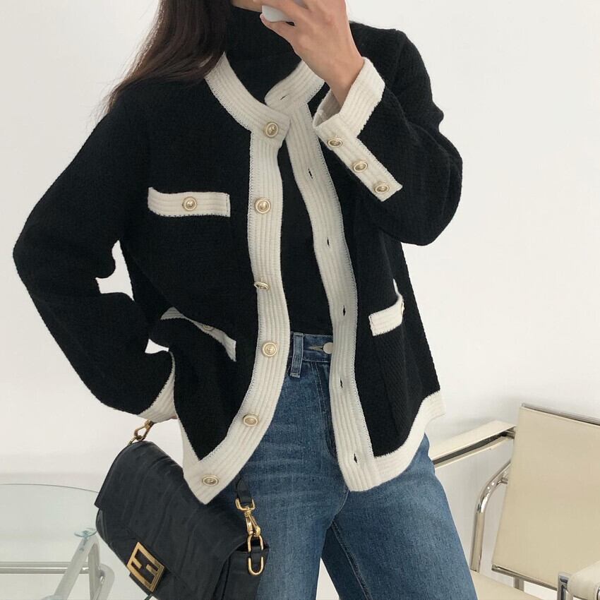 【韓国ファッション】大人可愛い オータムスタンダードラウンドネックカラーパールバックルルーズニットカーディガンセーター ロング レトロ 秋物 Oネック 真珠 ポケット多め マルチポケット ♡ 韓国78044932100 | パリジェンヌ、韓国系ファッション July