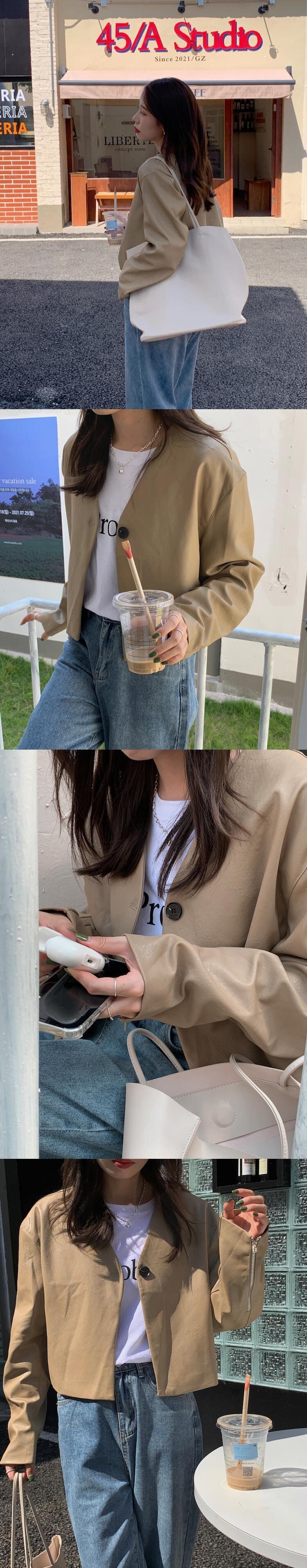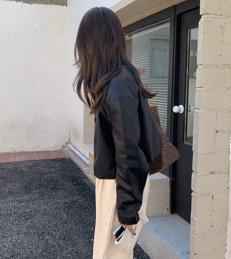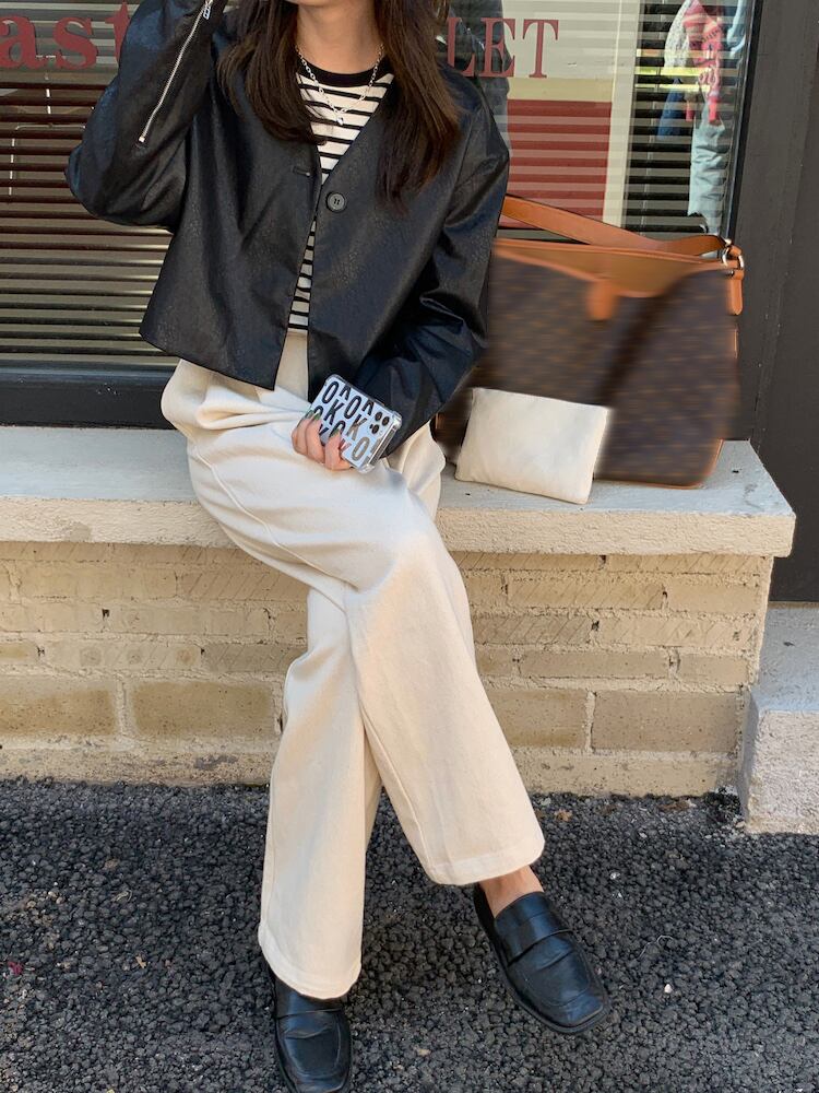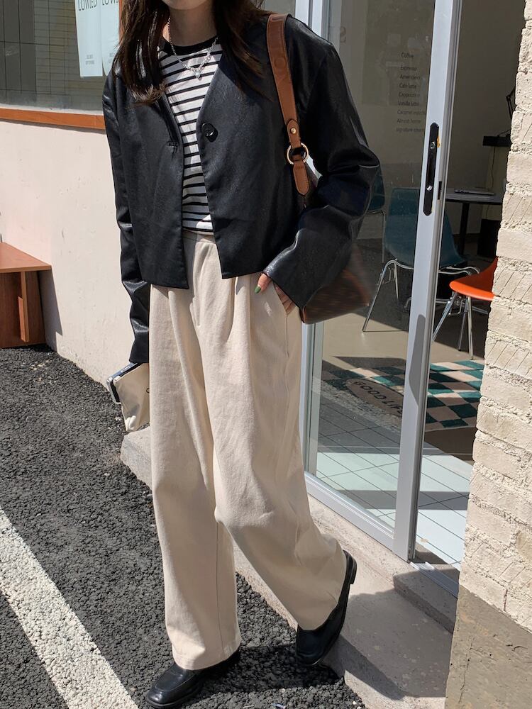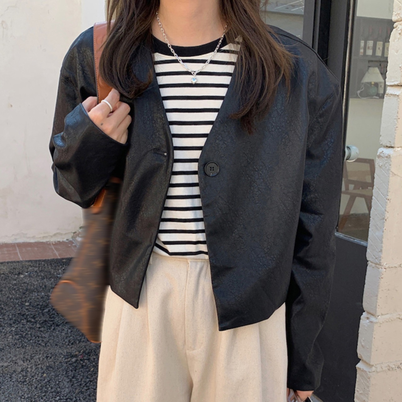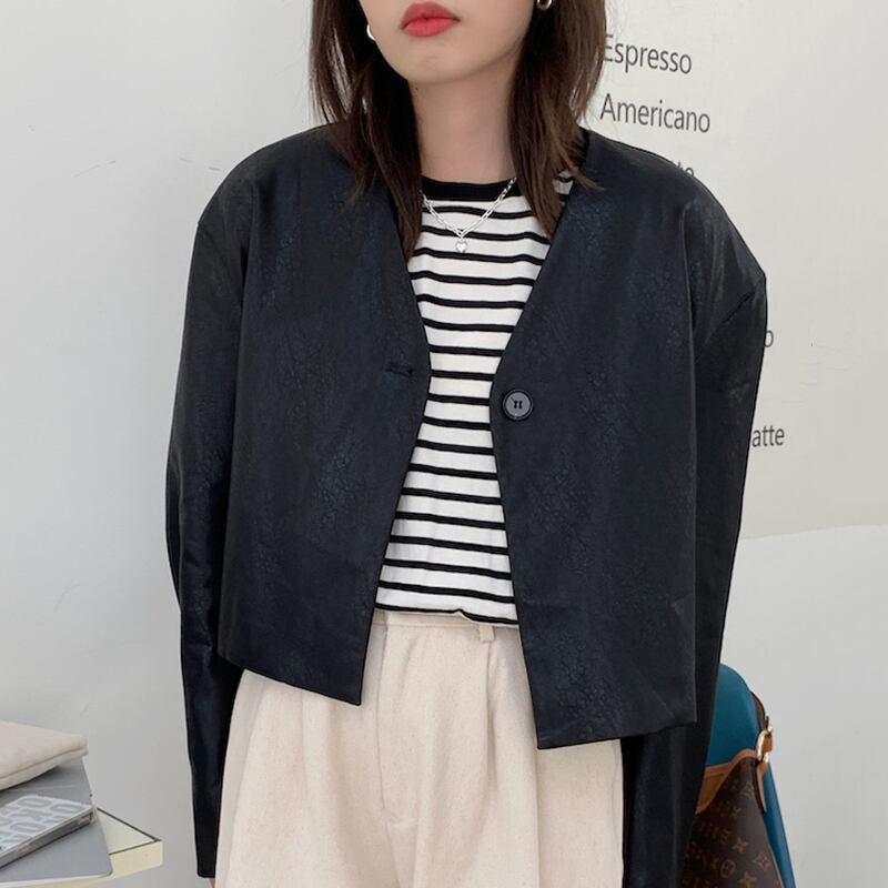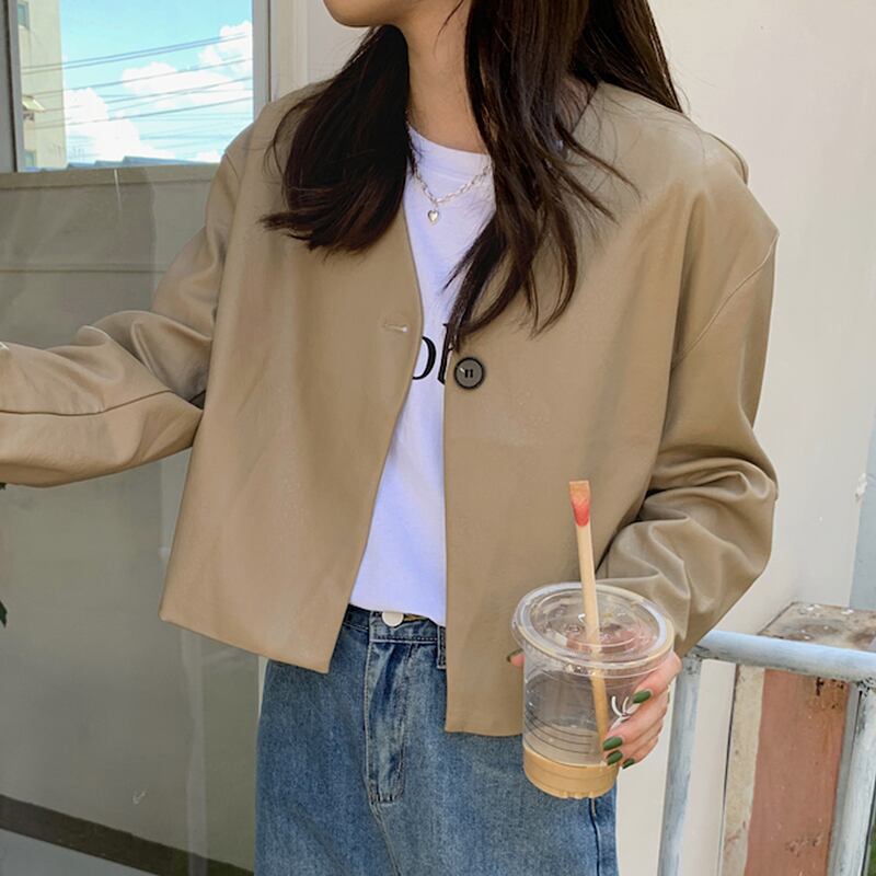 【韓国ファッション】大人可愛い オータムスタンダードVネックボタンルーズカジュアルショートレザージャケット ロング レトロ 秋物 ♡ 韓国98095984074 | パリジェンヌ、韓国系ファッション July