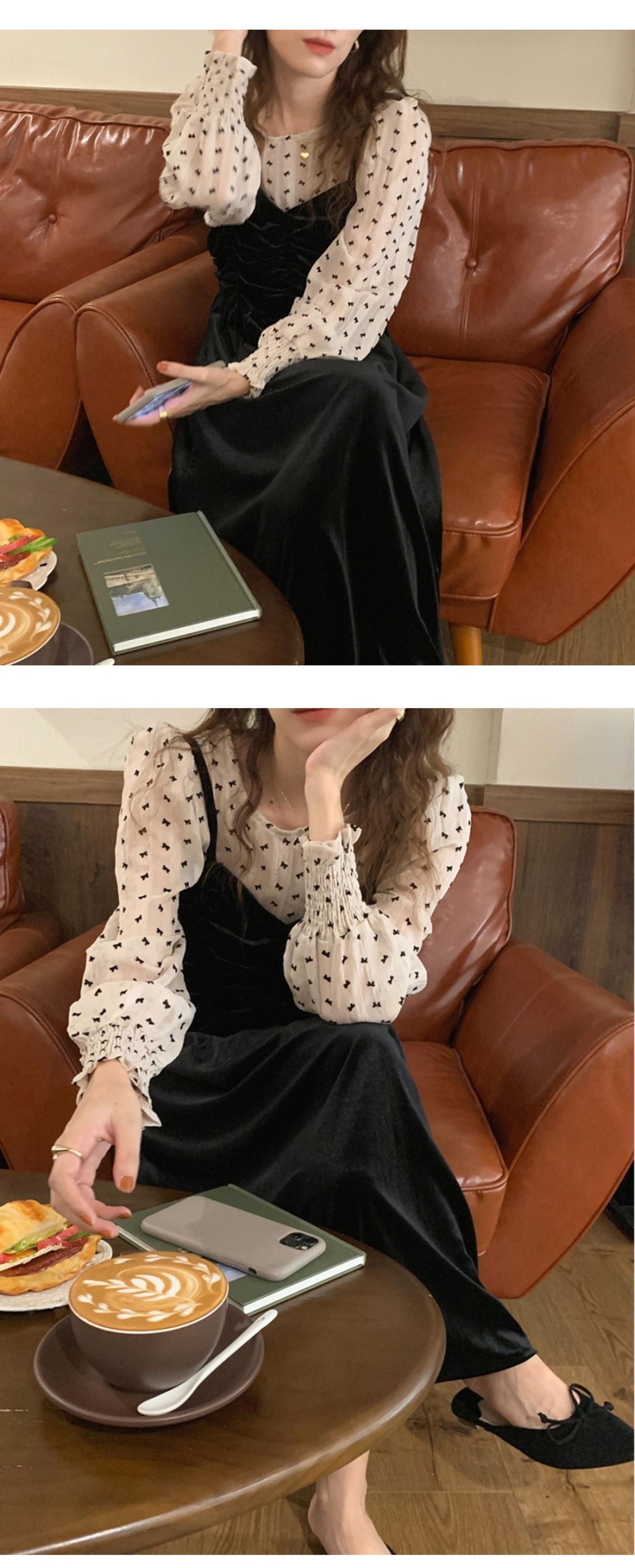 韓国服 スタンダードスリーブFlowerデザイン 長袖トップス プリーツベルベットスカート セット ロング レトロ フラワーデザイン ♡ nanfeng87745473326 | パリジェンヌ、韓国系ファッション July