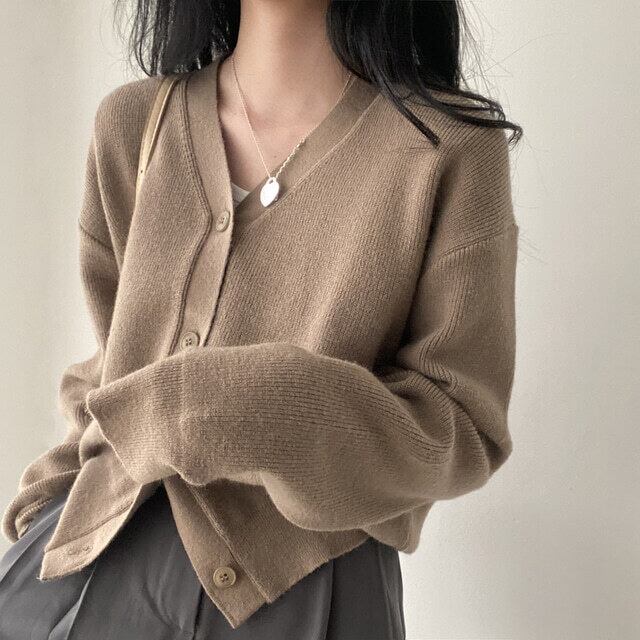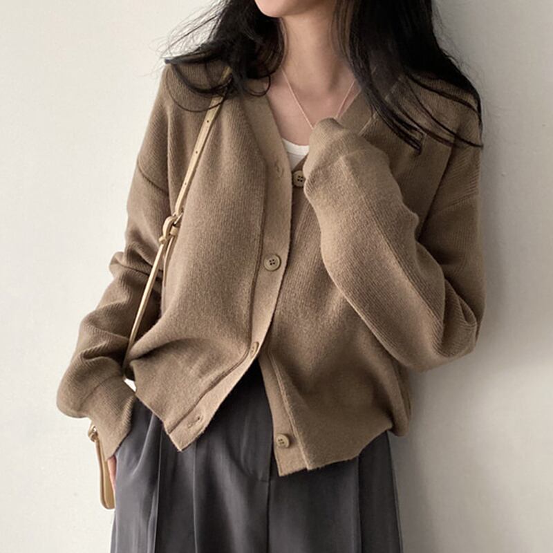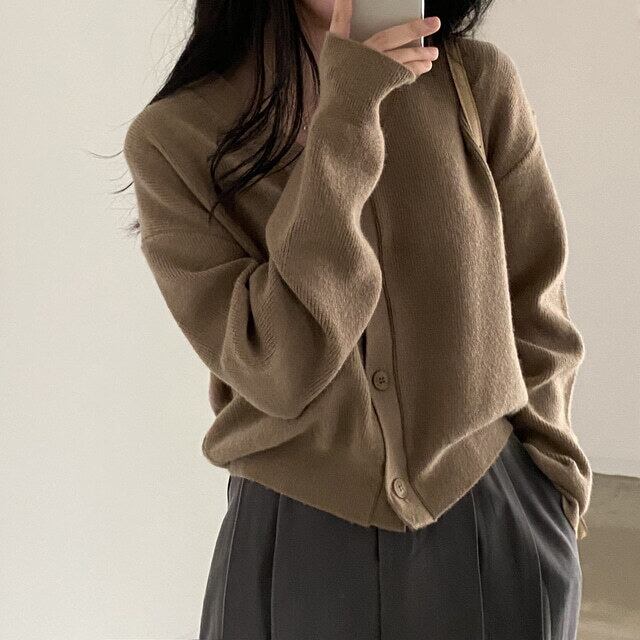 【韓国ファッション】大人可愛い オータムスタンダードVネックルーズニットカーディガンセーター ジャケット レディース ロング レトロ 秋物 ♡ 韓国87409534475 | パリジェンヌ、韓国系ファッション July