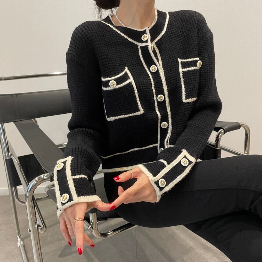 【韓国ファッション】大人可愛い オータムブラックホワイトカラーボタンニットカーディガンセーター レディース ロング 秋物 ♡ 韓国97191045944 | パリジェンヌ、韓国系ファッション July