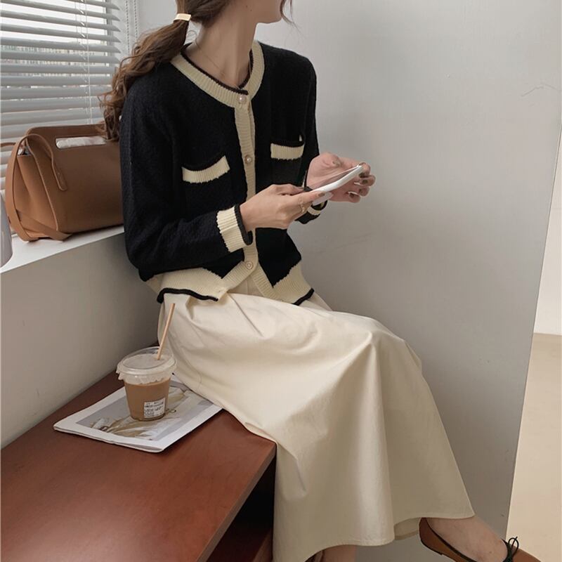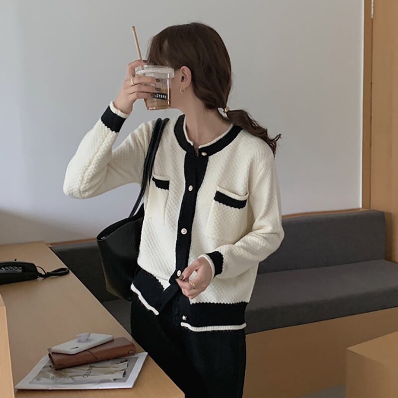 韓国服 ブラックホワイト薄手ラウンドネックニットカーディガンオータムセーター ジャケット ロング 秋物 Oネック ♡ nanfeng94201316393 | パリジェンヌ、韓国系ファッション July
