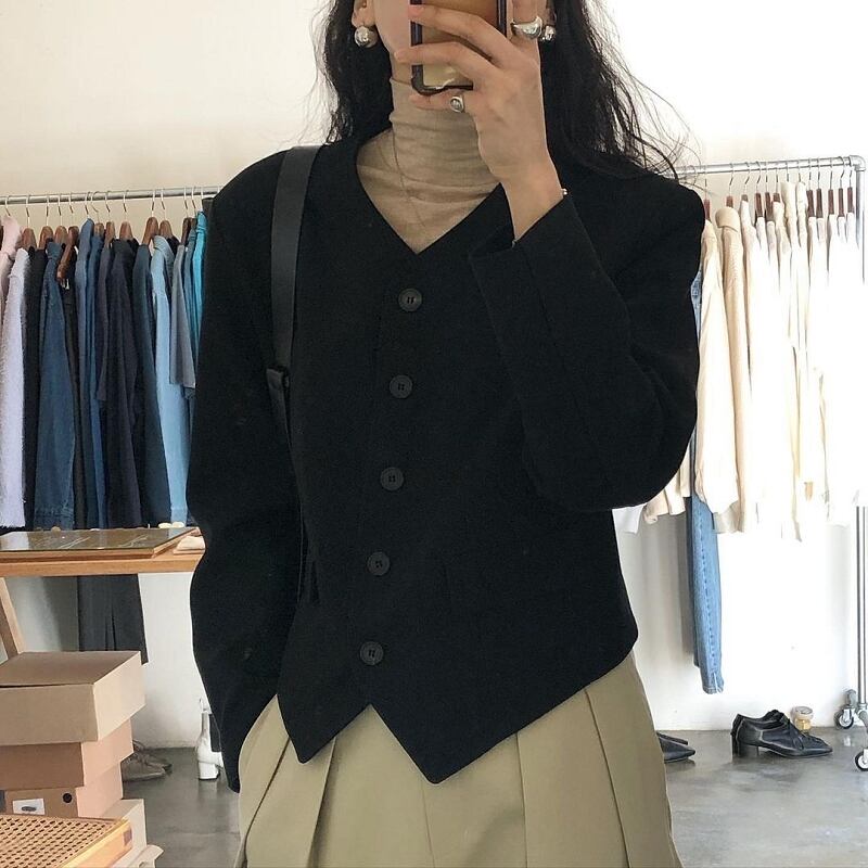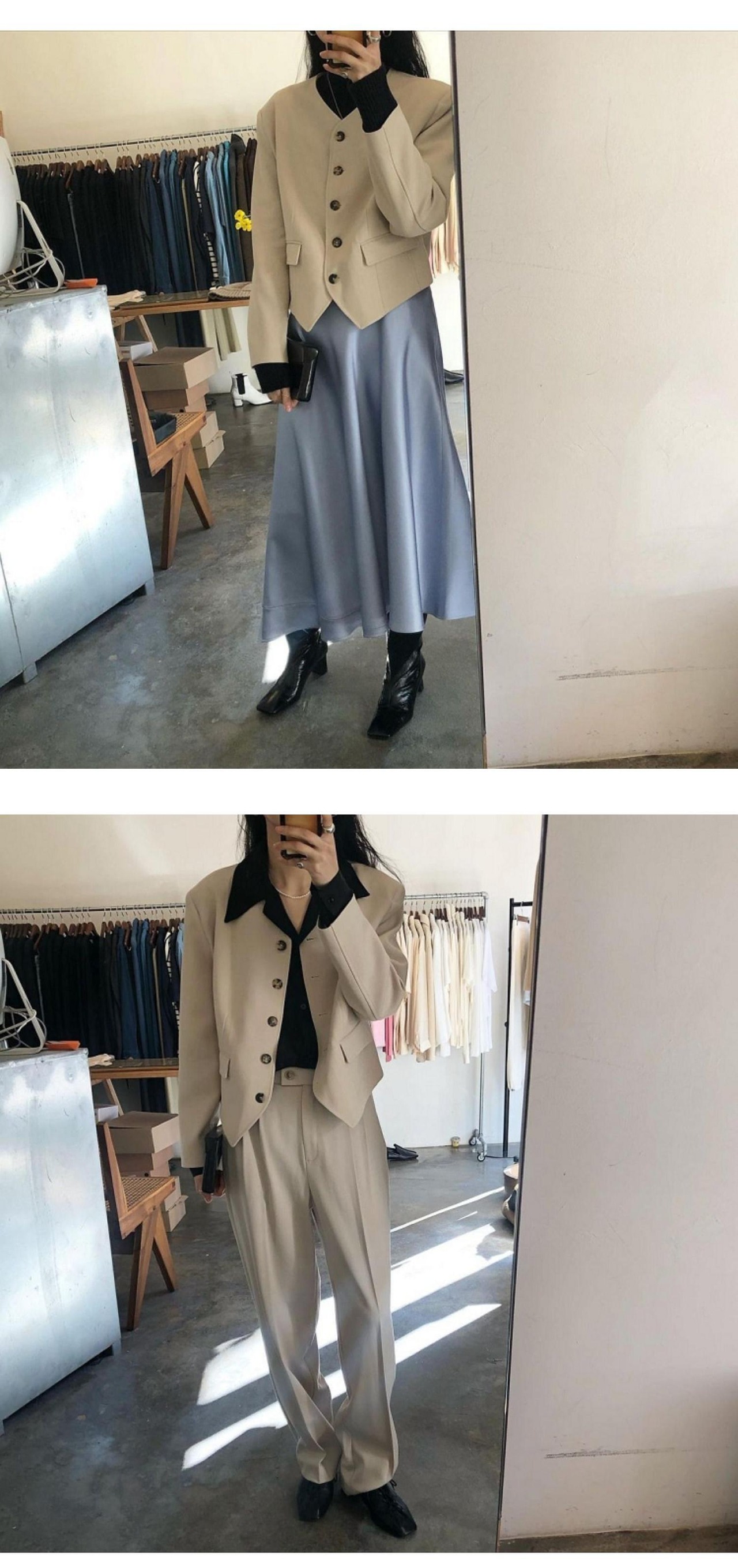 韓国服 オータムスタンダードVネックショートジャケット サテンストレッチハイウェストウェストスカート レトロ エラスティック 伸縮 秋物 ♡ nanfeng42675327414 | パリジェンヌ、韓国系ファッション July
