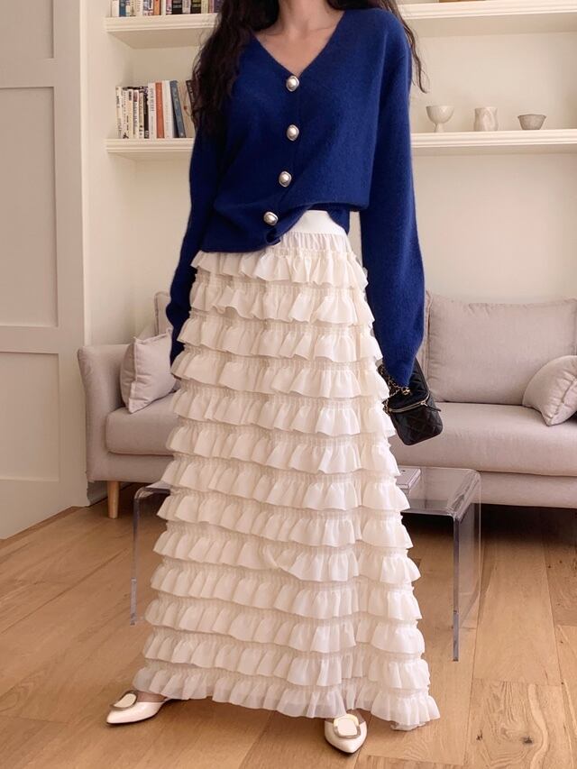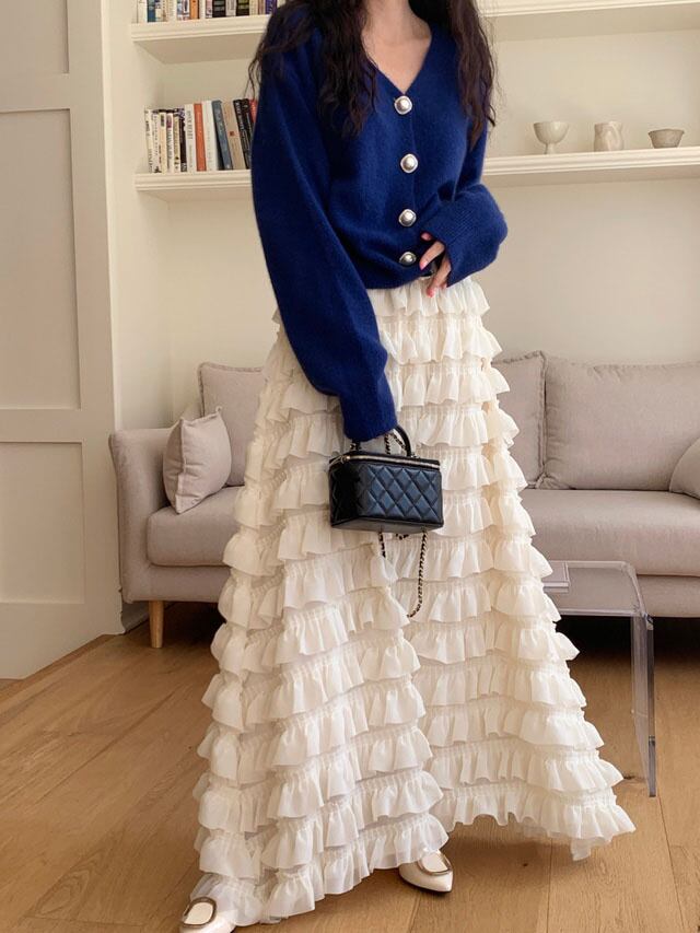 【韓国ファッション】大人可愛い オータムスタンダードVネックパールボタンニットカーディガンセーター ハイウェストウェストスカート レッド レトロ 秋物 真珠 ♡ 韓国87031803083 | パリジェンヌ、韓国系ファッション July