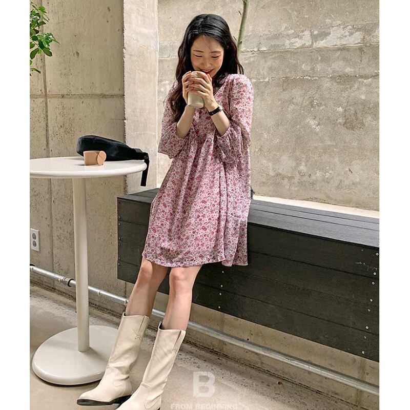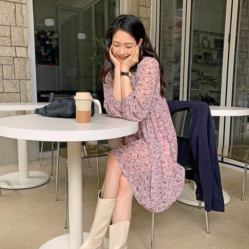 韓国服 フローラルドレス オータムラウンドネックハイウェストウェストルーズスリムスカート ロング 大人ガーリー スウィート キュート カジュアル 秋物 花柄 Oネック ♡ nanfeng24674164484 | パリジェンヌ、韓国系ファッション July