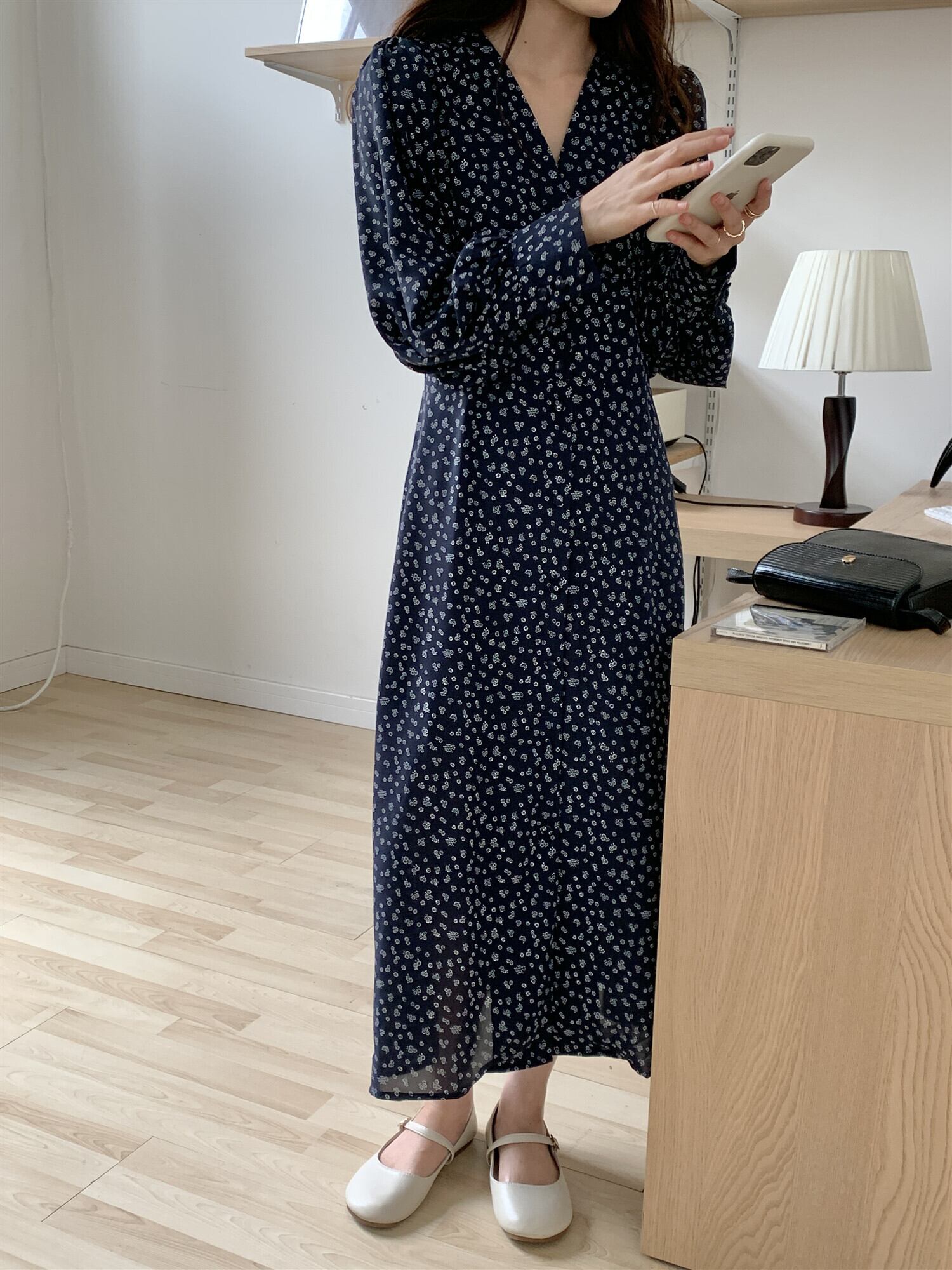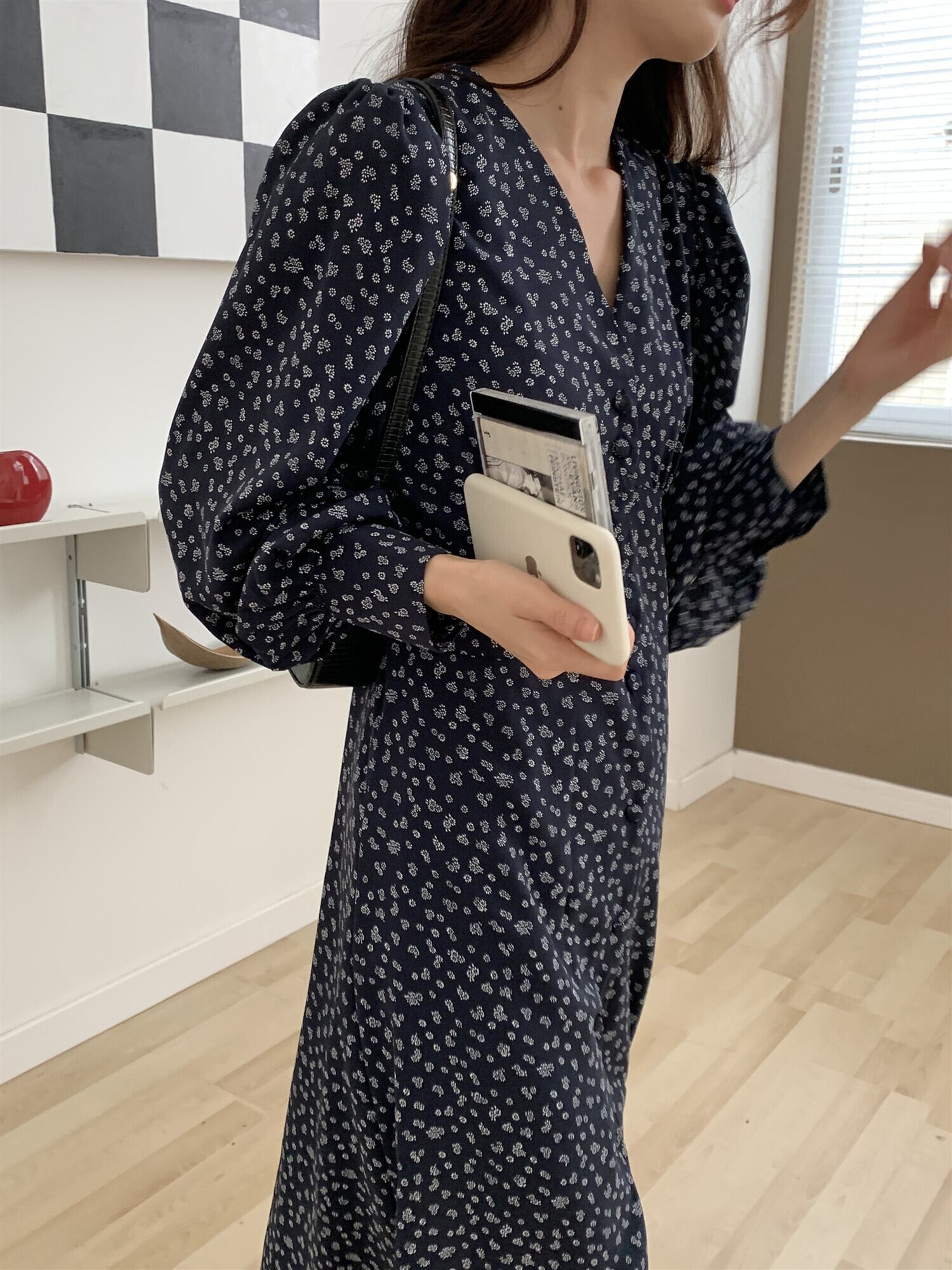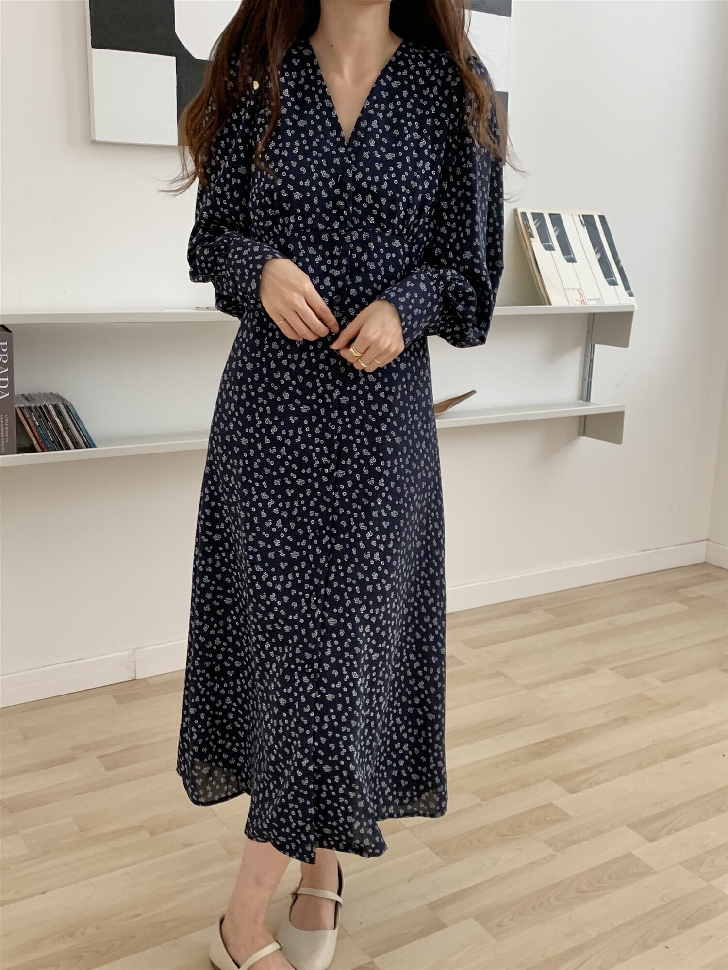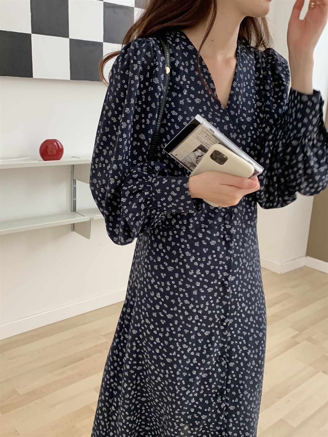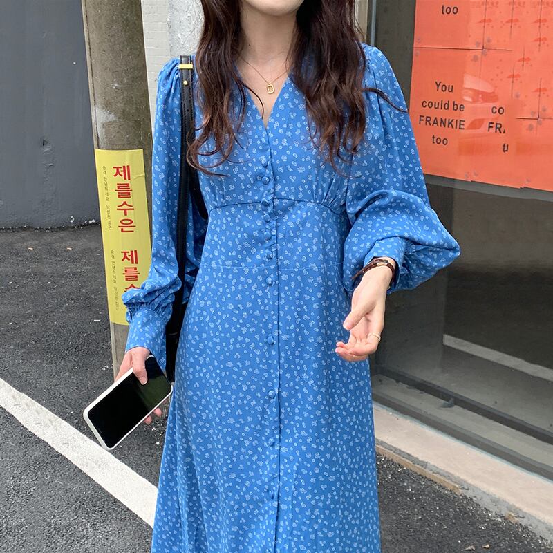 【韓国ファッション】大人可愛い オータムスタンダードVネック薄手ブレストハイウェストウェストスリーブフローラルドレス ロングスカート レトロ 秋物 花柄 ♡ 韓国76927287589 | パリジェンヌ、韓国系ファッション July