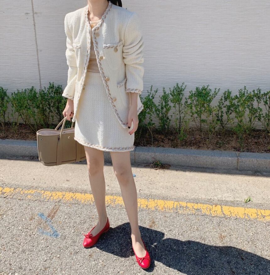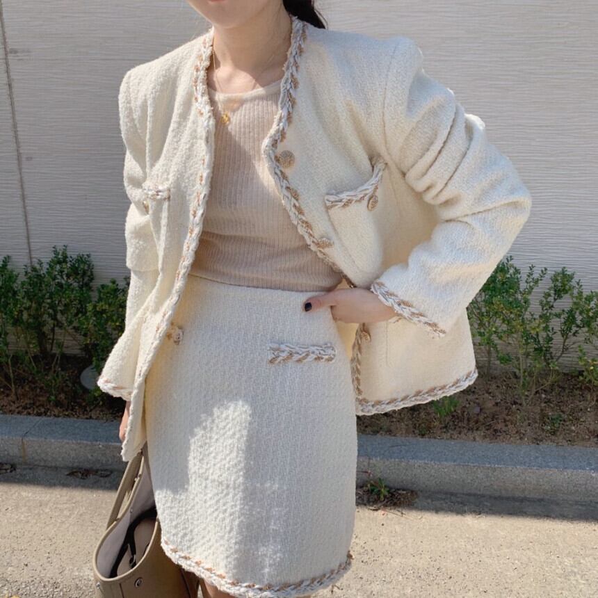 【韓国ファッション】大人可愛い ラウンドネックルーズツィードジャケット ロング Oネック ステッチ ポケット多め マルチポケット ♡ 韓国66994743665 | パリジェンヌ、韓国系ファッション July
