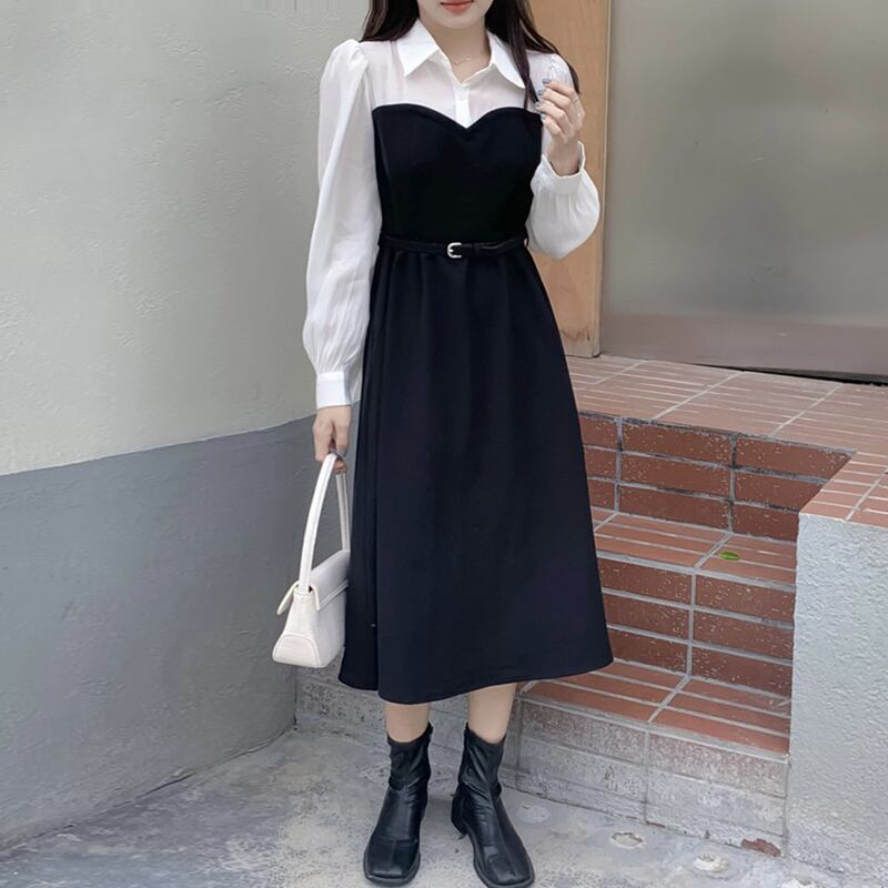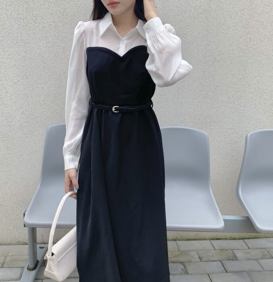 【韓国ファッション】大人可愛い カラーハイウェストウェストスリーブドレス ロングスカート ベルト エレガント ハーネス ステッチ ♡ 韓国86819012197 | パリジェンヌ、韓国系ファッション July