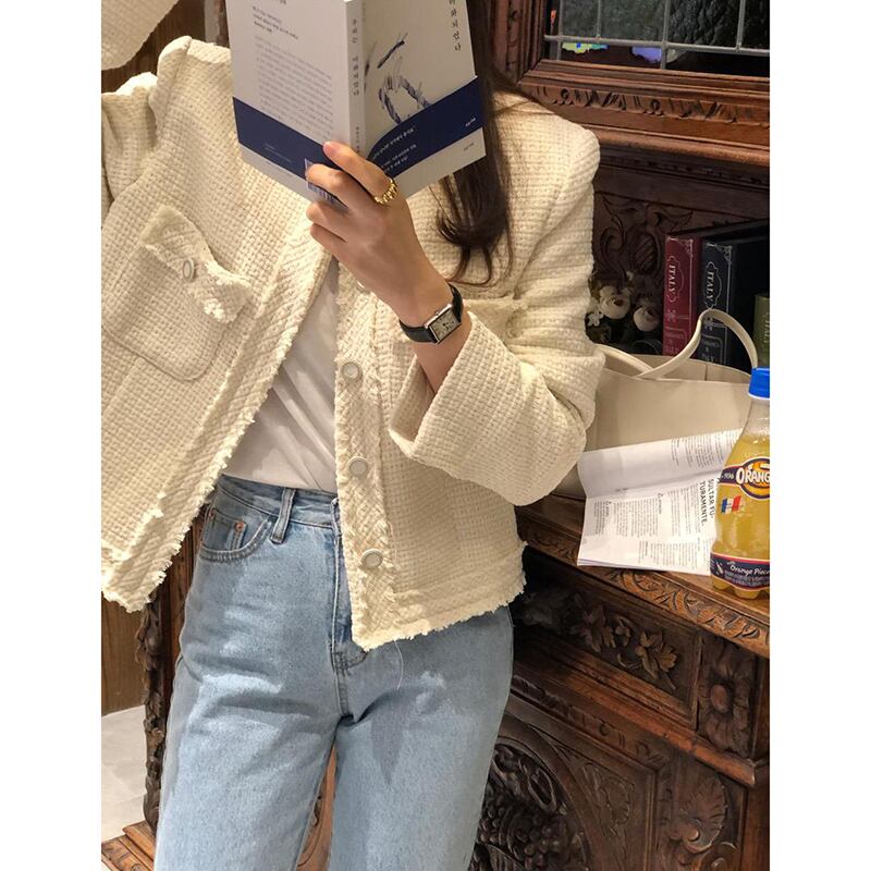 韓国服 カジュアルツィードジャケット ショートオータムウィンターラウンドネックルーズスリムトップス 秋物 冬物 Oネック ♡ nanfeng37317930484 | パリジェンヌ、韓国系ファッション July