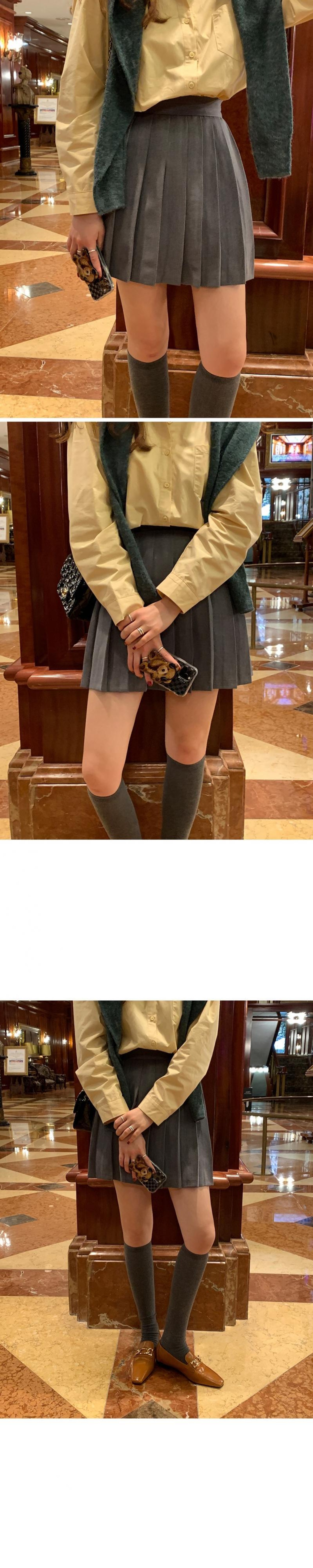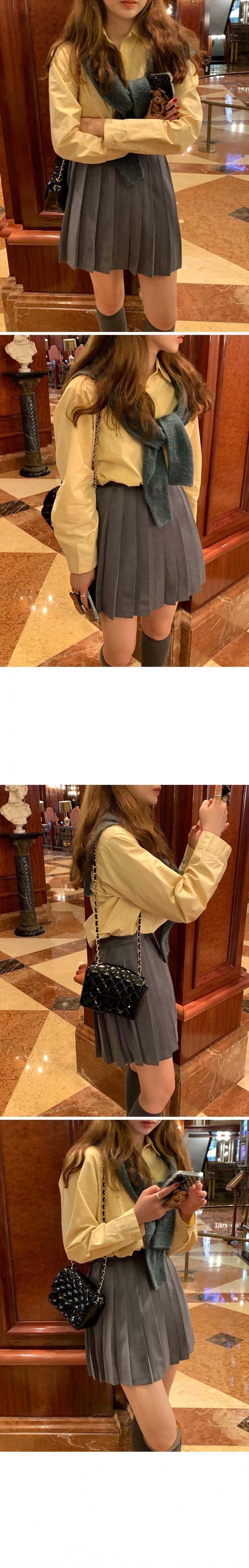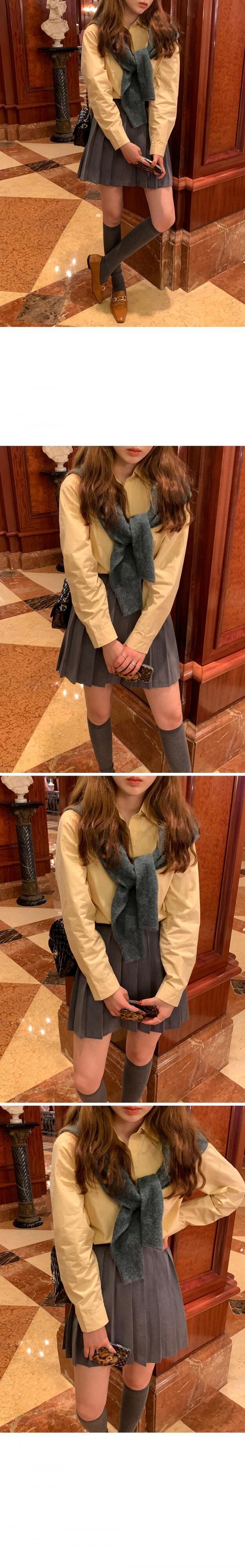 色:ダークグリーンのセーター,黄色のシャツ,グレースカート